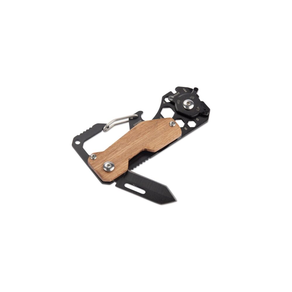 Miara/linijka, otwieracz do butelek, nożyk, wkrętak płaski i krzyżowy, klucz łomowy, klucz do szprych, komplet kluczy sześciokątnych oraz funkcja podważania – wszystkie te cechy produktu sprawiają, że Narzędzie wielofunkcyjne FINLI staje się niezastąpionym partnerem w domu, warsztacie, na biwaku czy podczas awaryjnych napraw roweru. To rozwiązanie jest wręcz doskonałe dla serwisantów, pracowników firm budowlanych, ekip eventowych czy miłośników outdooru. Z kolei miłośnicy majsterkowania docenią trwałość metalu i przyjemny w dotyku, brązowy drewniany akcent, który nadaje całości prestiżowego charakteru.