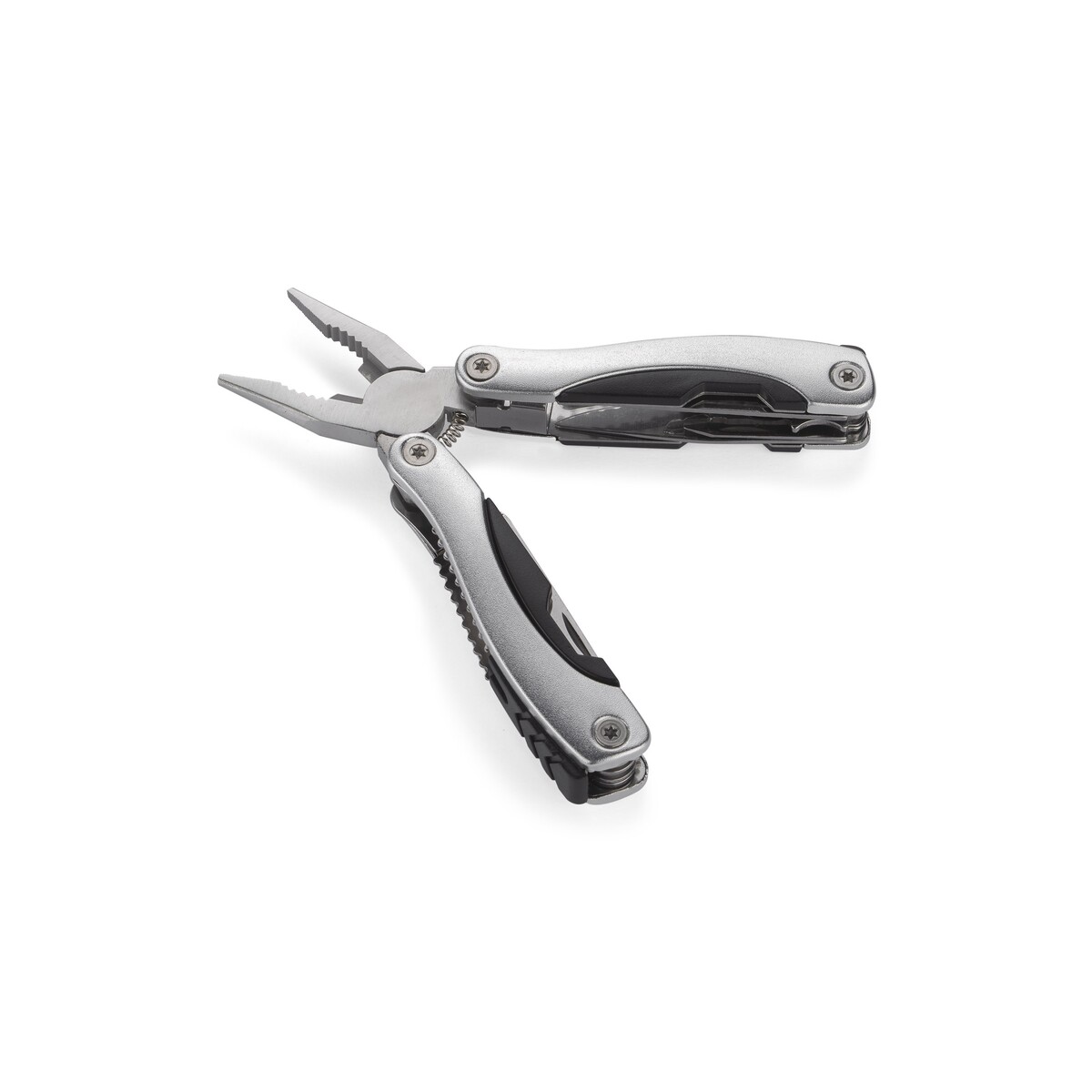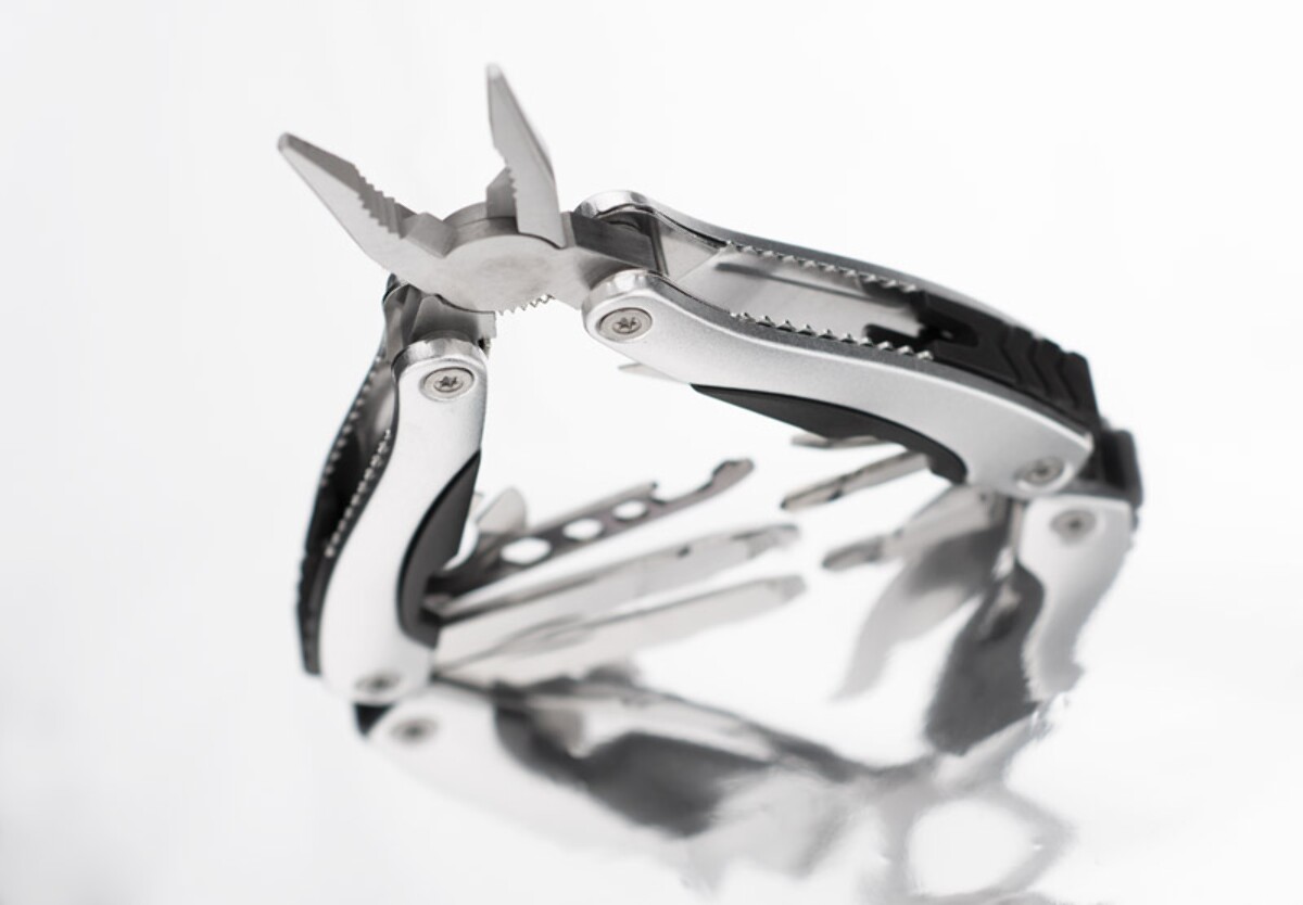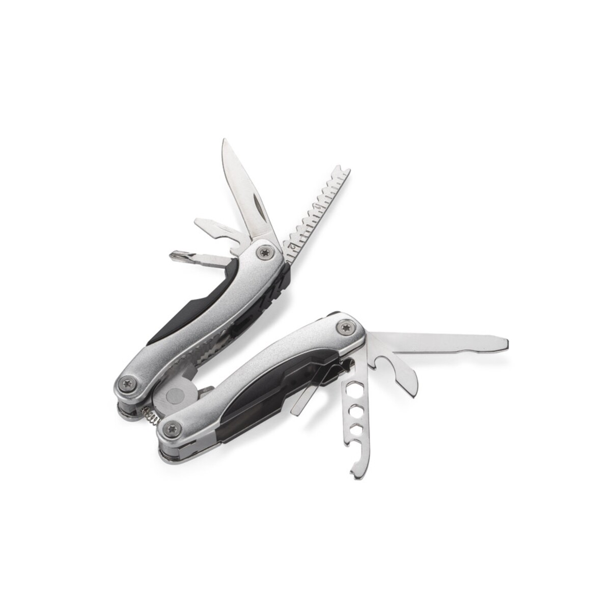 Narzędzie wielofunkcyjne WORK to prawdziwy, kompaktowy warsztat, który zmieści się w kieszeni spodni lub w schowku samochodowym 🙂 Dzięki wymiarom 100 × 46 × 24 mm i niewielkiej masie 228 g, pozostaje poręczne, a równocześnie solidne – wykonane z wytrzymałego metalu oraz tworzywa w eleganckim srebrnym odcieniu. W zestawie znajduje się także czarny pokrowiec z tkaniny Oxford, który skutecznie chroni narzędzie w każdej sytuacji. Ten praktyczny gadżet zawiera aż dziewięć funkcji: kombinerki, przecinak, nóż o gładkim ostrzu, piłę, pilnik, śrubokręt płaski i krzyżowy, otwieracz do butelek i puszek oraz trzy rozmiary kluczy oczkowych.