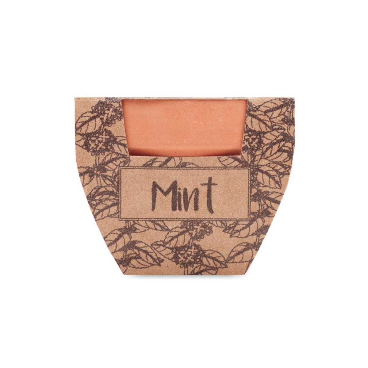 W zestawie znajdziesz nasiona aromatycznej mięty oraz sprasowaną tabletkę z podłożem – wszystko, czego potrzeba, by w kilka chwil rozpocząć domową uprawę 🌿. Materiał: terracotta gwarantuje doskonałą cyrkulację powietrza i odprowadzanie wilgoci, dzięki czemu roślina rośnie szybciej i zdrowiej. Kompaktowe wymiary: 6 × 5,5 × 5 cm i lekka waga: 0,063 kg sprawiają, że produkt z łatwością zmieści się w paczce wysyłkowej lub firmowym welcome packu. Naturalny, „drewniany” kolor doniczki idealnie komponuje się z zielenią listków, a jednocześnie stanowi neutralne tło dla dowolnego logo.