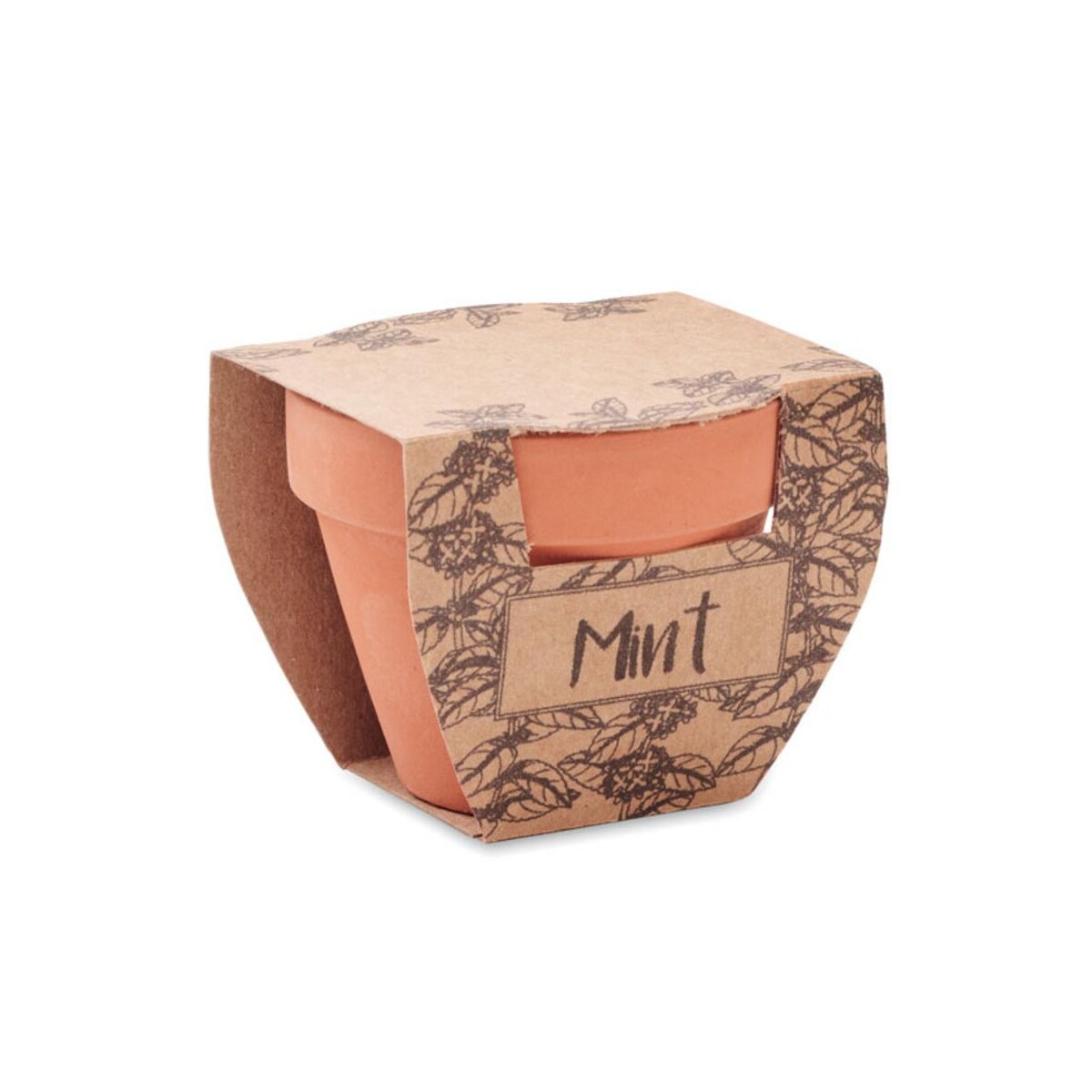 Dzięki możliwości umieszczenia logo oraz indywidualnego nadruku, produkt staje się nośnikiem wizerunku dla Twojej firmy. Każde spojrzenie na kiełkującą miętę przypomni obdarowanym o marce, która zadbała o ich komfort. Ten perfekcyjny, a jednocześnie przyjazny środowisku prezent wyróżnia się kompaktowymi wymiary: 6×5,5×5 cm, lekką waga: 0,063 kg oraz naturalnym materiał: terracotta. Ciepły, ziemisty kolory: drewniany odcień doniczki harmonijnie komponuje się z soczystą zielenią listków, tworząc estetyczną ozdobę każdego wnętrza.