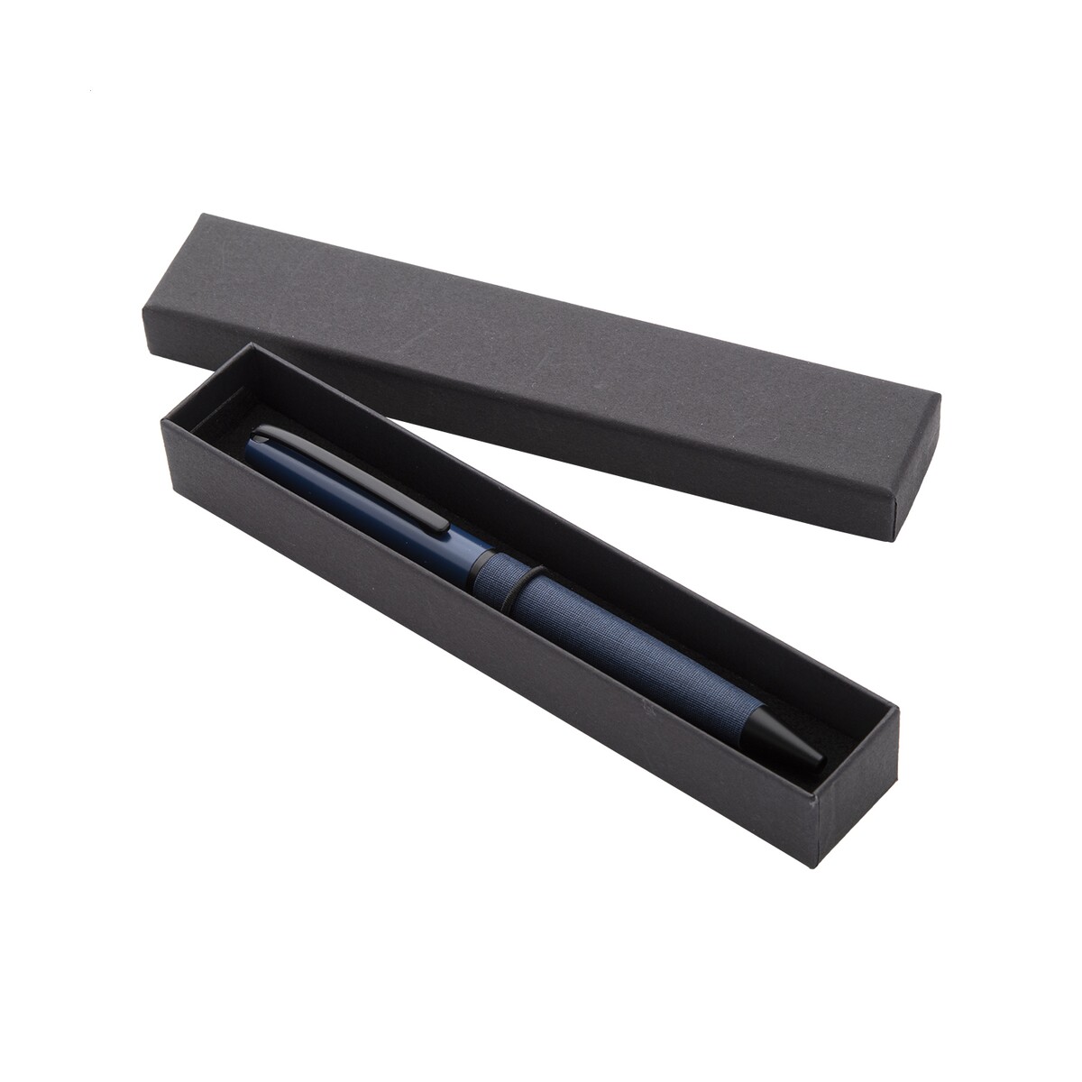 Nerra długopis to znakomity wybór dla osób, które cenią szykowne detale oraz odpowiedzialne materiały. Metalowy mechanizm przekręcany współgra tu z miękką skórą PU, tworząc elegancką formę o wymiarach 160×28×25 mm i wadze zaledwie 50 g. Trzy stylowe kolory – ciemnoniebieski, czarny i szary – pozwalają dopasować dodatek do wizerunku marki, a praktyczne czarne pudełko podnosi rangę prezentu. Dzięki niebieskiemu wkładowi i solidnej konstrukcji gadżet będzie długo służyć użytkownikowi, budując pozytywne skojarzenia z Twoją marką 😊