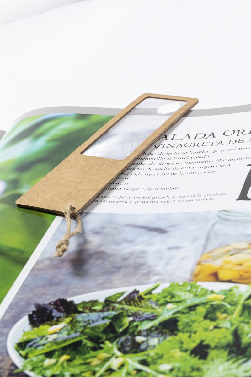Zakładka posiada wbudowane szkło powiększające, które ułatwia odczytywanie drobnych liter, a umieszczony w górnej części sznurek pomaga szybko odnaleźć ostatnio czytaną stronę. Zastosowanie jest szerokie – od codziennego korzystania w domu po wsparcie w pracy biurowej czy przy kontroli jakości druków. Może służyć jako linijka do podkreślania fragmentów tekstu, co docenią uczniowie, projektanci i redaktorzy.