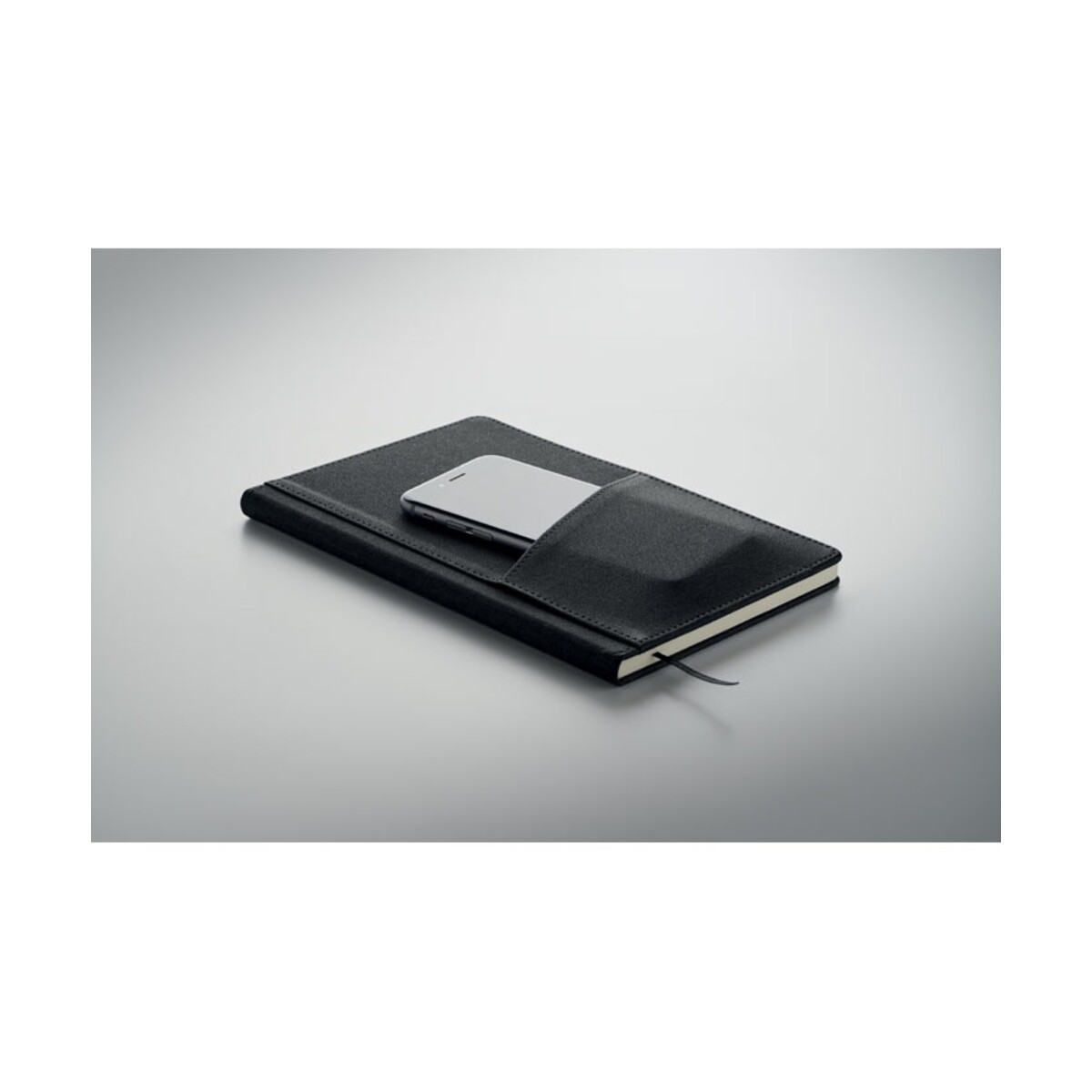 Notes A5 z kieszenią z przodu CINCO to nowoczesny, a zarazem elegancki gadżet, który wyróżni Cię podczas każdego spotkania biznesowego 😊. Solidna, twarda okładka z PU kryje w sobie 160 stron w linie (80 kartek) z ekologicznego papieru z recyklingu, a zintegrowana kieszeń na telefon umieszczona na froncie ułatwia przechowywanie smartfona, wizytówek czy drobnych notatek. Dzięki kompaktowym wymiarom 21 × 14 × 1,2 cm i wadze zaledwie 260 g, notatnik bez trudu zmieścisz w torbie lub plecaku, zachowując profesjonalny wygląd w każdej sytuacji.