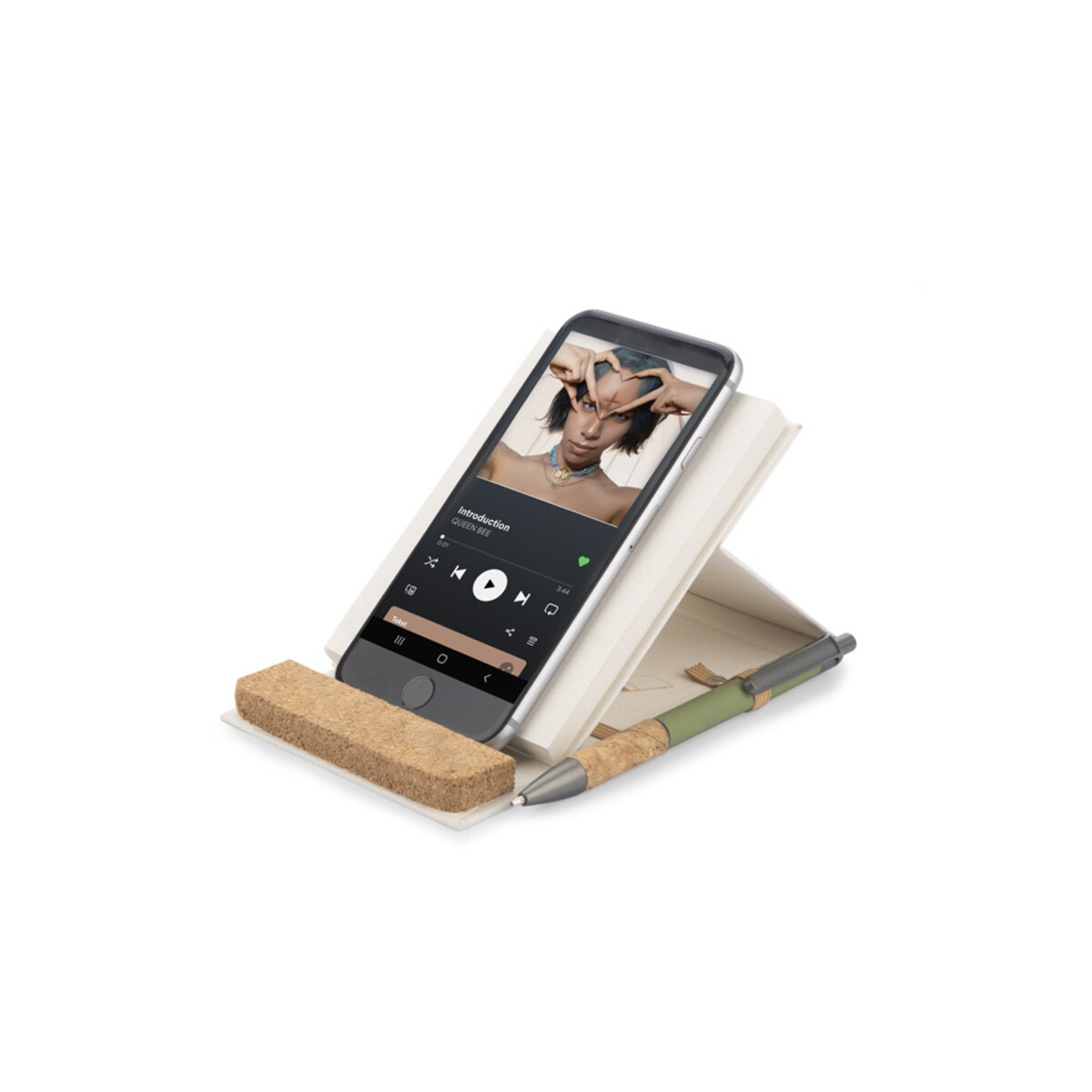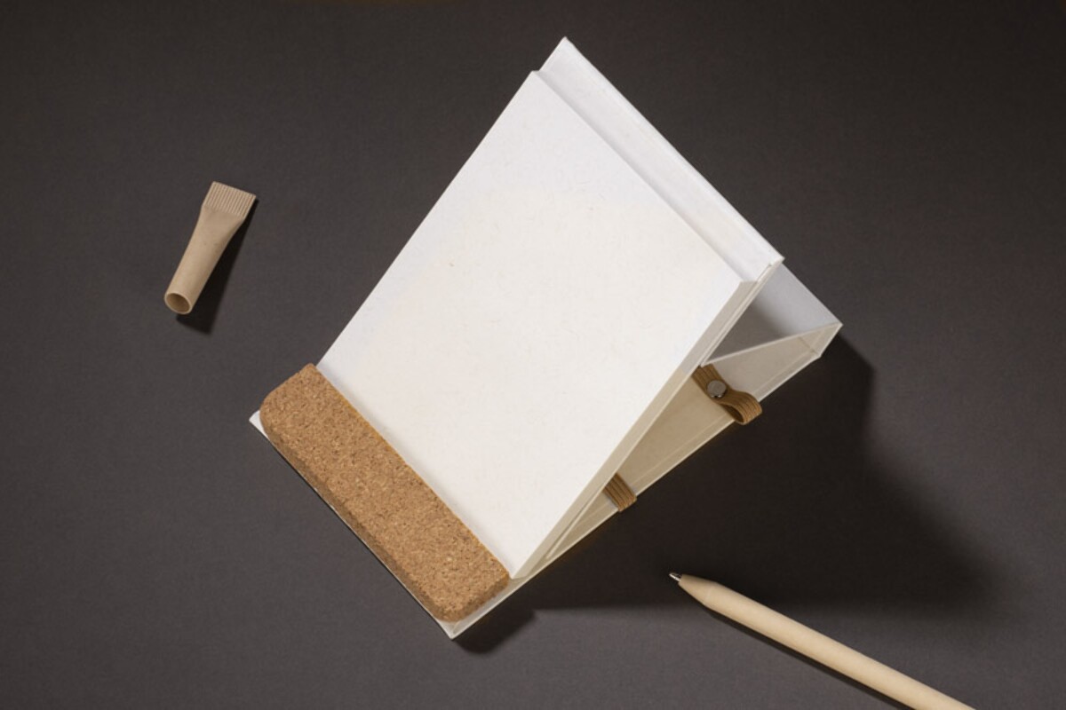 W skrócie: papier z kartonów po mleku, 80 gładkich stron, elastyczna gumka, ergonomiczny korkowy stojak na telefon oraz opcja personalizacji logo czynią ten produkt absolutnie wyjątkowym. Wybierz ekologiczny, funkcjonalny i stylowy gadżet, który będzie wymarzonym ambasadorem Twojej marki w codziennym życiu odbiorców.