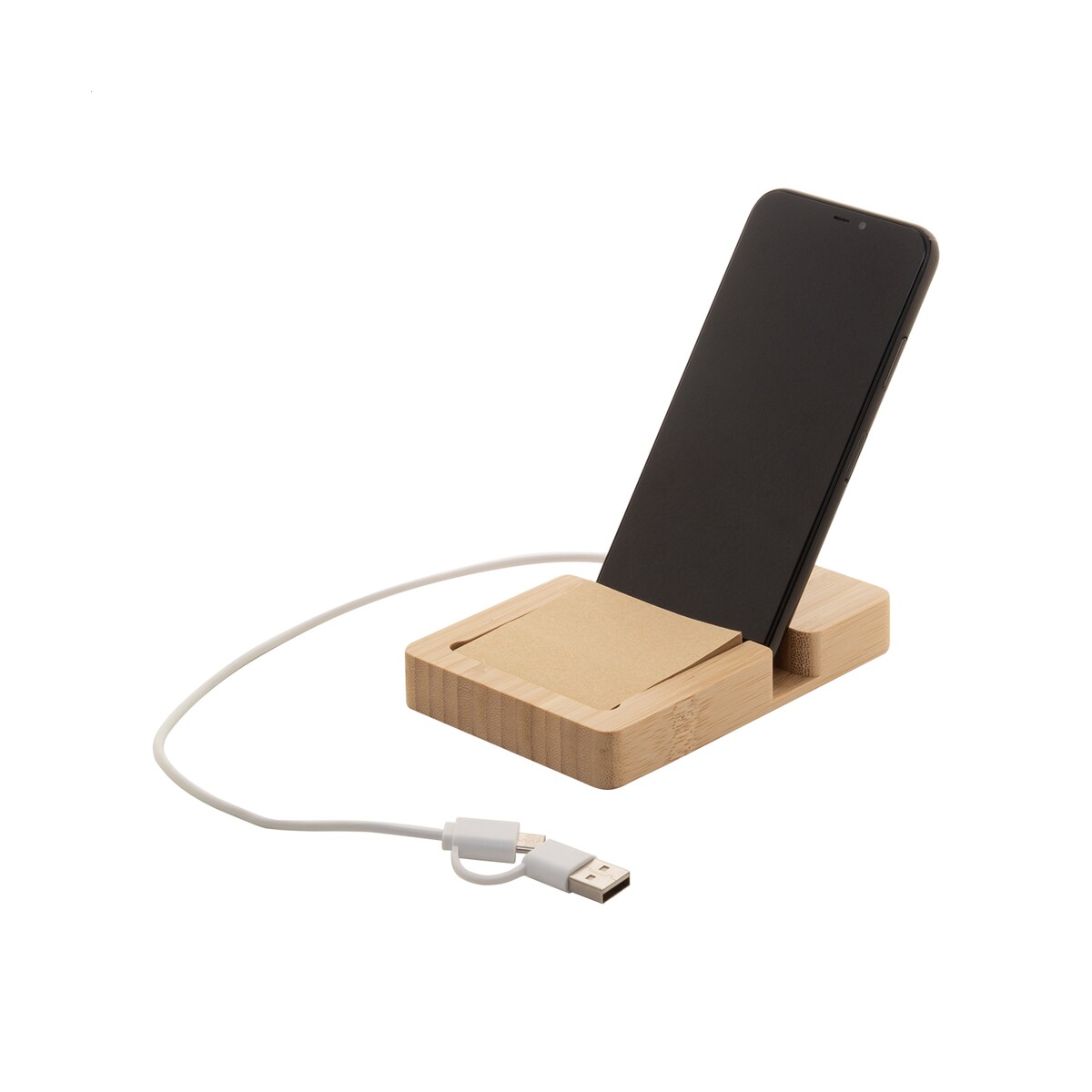 Notto hub USB to nowoczesny, a zarazem ekologiczny gadżet, który łączy w sobie funkcję rozdzielacza USB, podstawki na smartfon oraz poręcznego bloku 130 kartek samoprzylepnych z papieru kraft 60×60 mm. Wykonany z naturalnego bambusa o wymiarach 85×127×18 mm i masie zaledwie 140 g, prezentuje się stylowo na każdym biurku, podkreślając proekologiczne wartości marki. Dzięki 2 portom USB i 2 portom USB-C w standardzie USB 2.0 pozwala na jednoczesne podłączenie pendrive’ów, kabli do ładowania czy urządzeń peryferyjnych, a dołączony kabel z wtyczkami USB i USB-C gwarantuje natychmiastową gotowość do pracy 🙂.