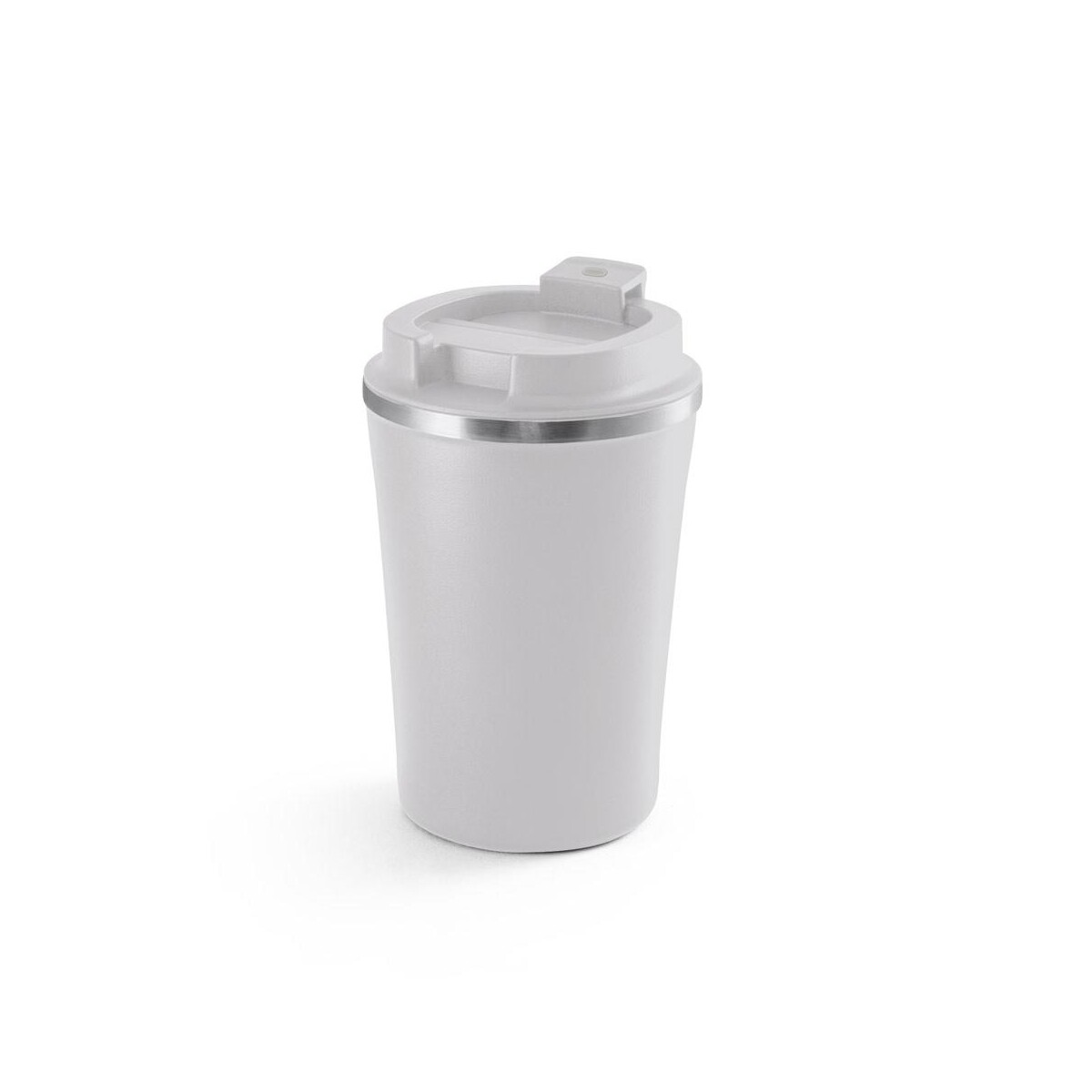 PHELPS CERAMIC. Kubek podróżny ze stali nierdzewnej z ceramicznym wykończeniem wnętrza o pojemności 470 ml to prawdziwie niezrównany kompan miejskich wędrówek i biurowych maratonów kawowych. Wykonany z wytrzymałej stali nierdzewnej, wyposażony w podwójne ścianki izolowane próżniowo i pokryty matową powłoką proszkową, utrzymuje temperaturę napoju przez długie godziny, a przy tym zachwyca nowoczesnym designem. Wnętrze z powłoką ceramiczną gwarantuje czysty, autentyczny smak, bez metalicznego posmaku, co doceni każdy koneser ulubionej kawy lub herbaty 🙂. Dzięki zakręcanej pokrywce z PP oraz kompaktowym wymiarom ø90 x 150 mm (waga zaledwie 209 g) możesz zabrać go wszędzie – do pracy, na uczelnię, trening czy w podróż.