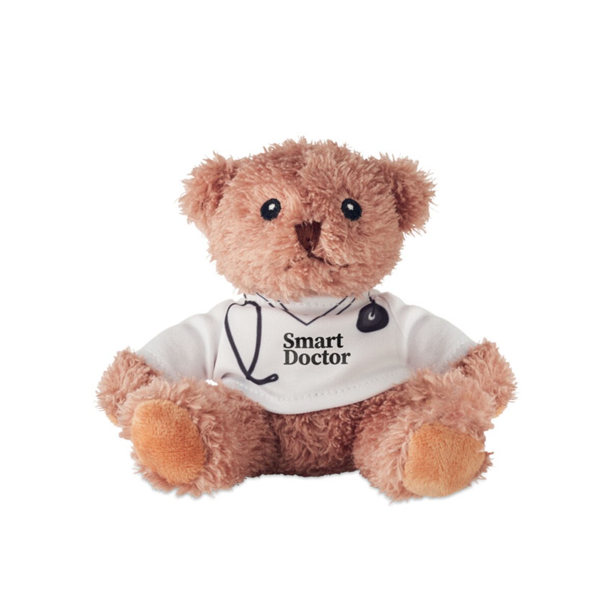 Ten uroczy pluszak z kategorii „Pluszaki z logo” to perfekcyjny wybór dla Twojej firmy, zwłaszcza jeśli działasz w branży medycznej, farmaceutycznej, ubezpieczeniowej czy wellness. Pluszowy miś lekarz DOC stanie się znakomitym ambasadorem zdrowia podczas targów, dni otwartych w klinikach, kampanii szczepień czy eventów edukacyjnych w szkołach. Na koszulce możemy umieścić wybrane logo, dzięki czemu maskotka zamieni się w efektowny produkt reklamowy, który wyróżni Twoją markę na tle konkurencji.