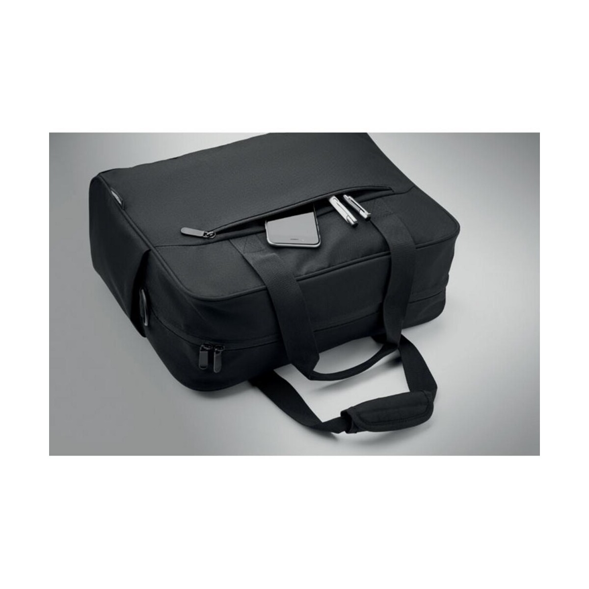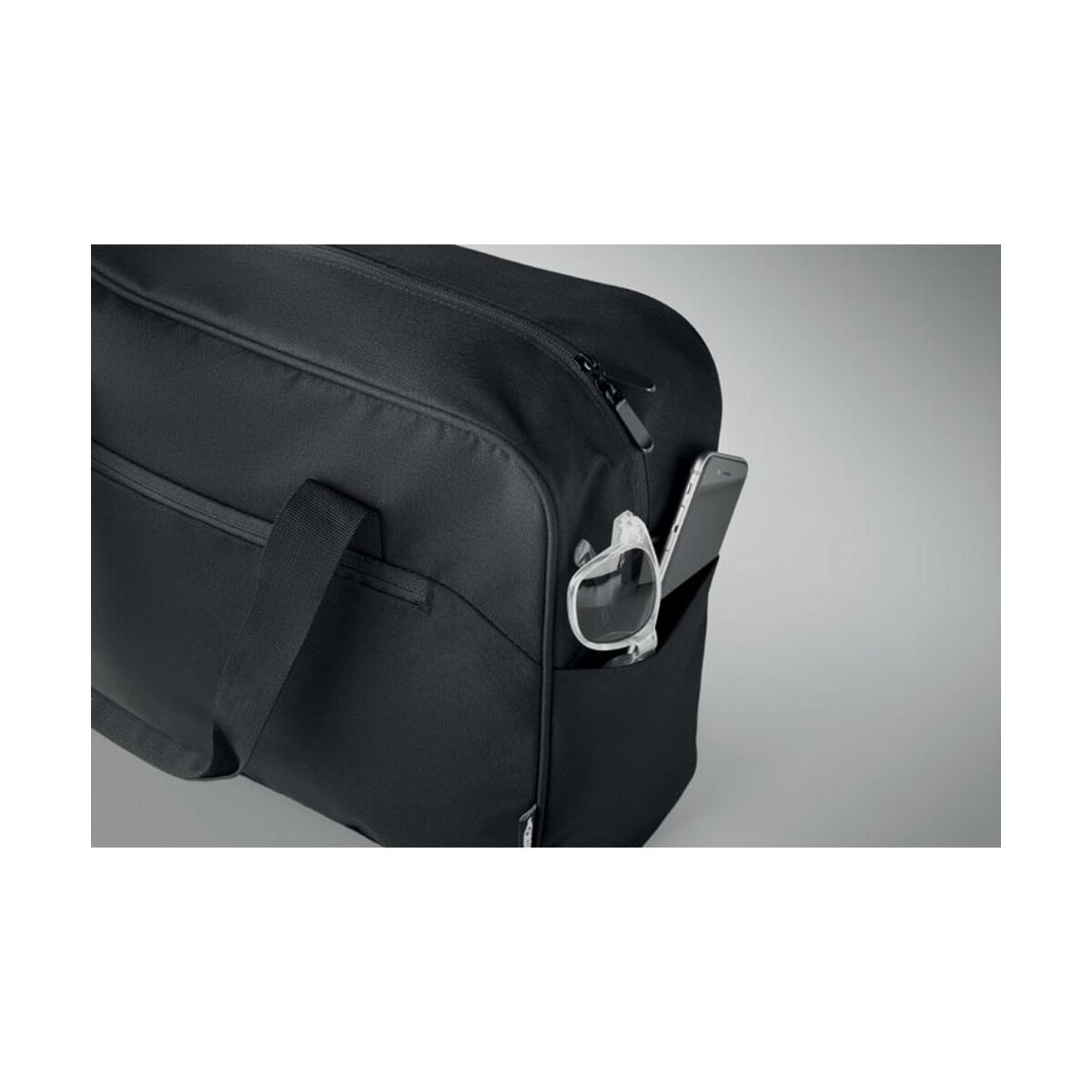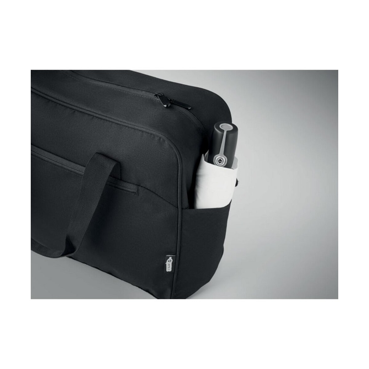 Podręczna torba podróżna ONBAG to znakomity towarzysz każdej służbowej lub prywatnej wyprawy. Wykonana z wytrzymałego materiału RPET 600D, powstałego z recyklingu butelek, łączy troskę o środowisko z miejskim stylem 😊. Jej przemyślana konstrukcja obejmuje dużą przednią kieszeń zapinaną na zamek oraz dwie poręczne kieszenie boczne, dzięki czemu najpotrzebniejsze drobiazgi masz zawsze pod ręką.