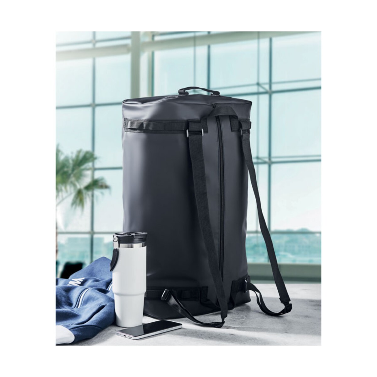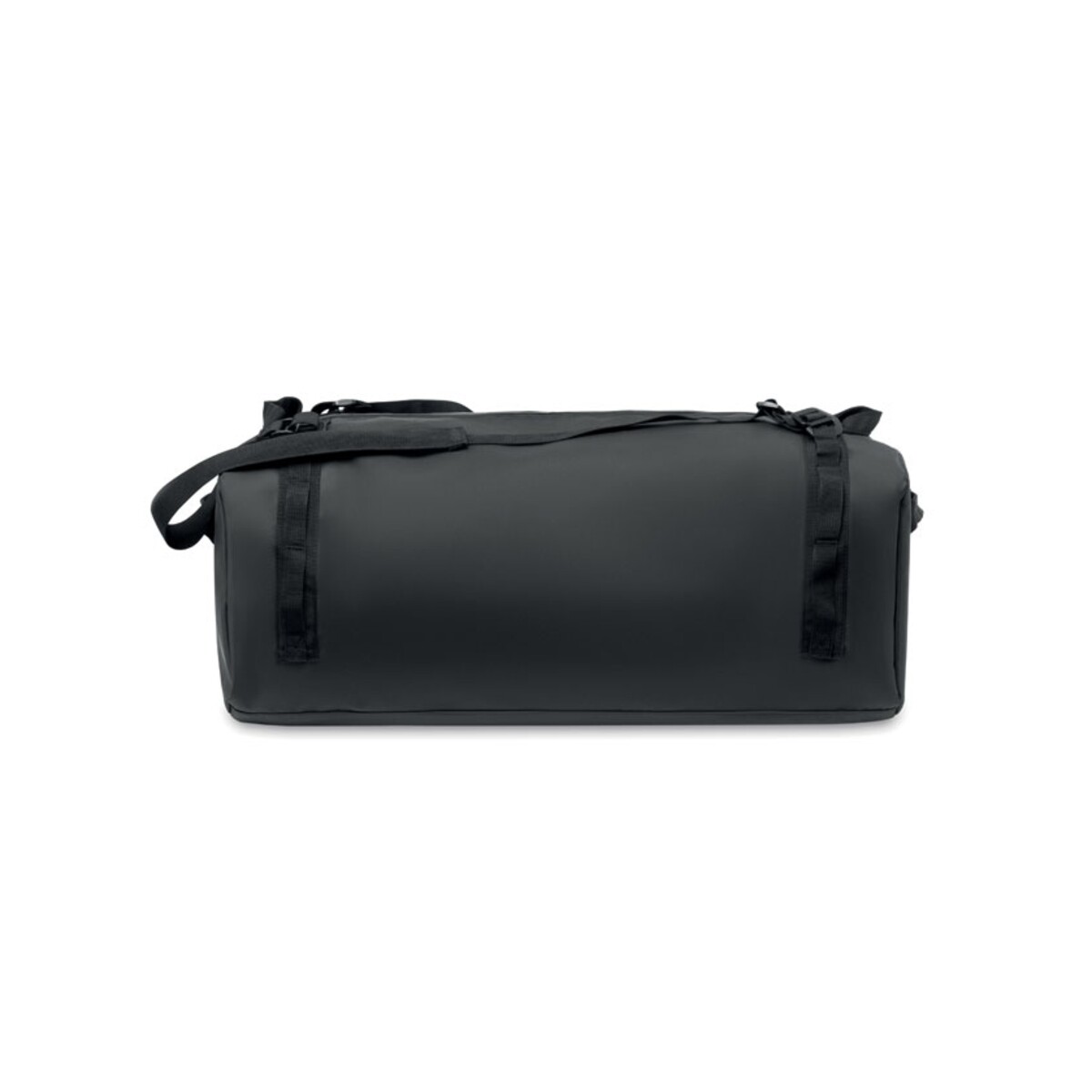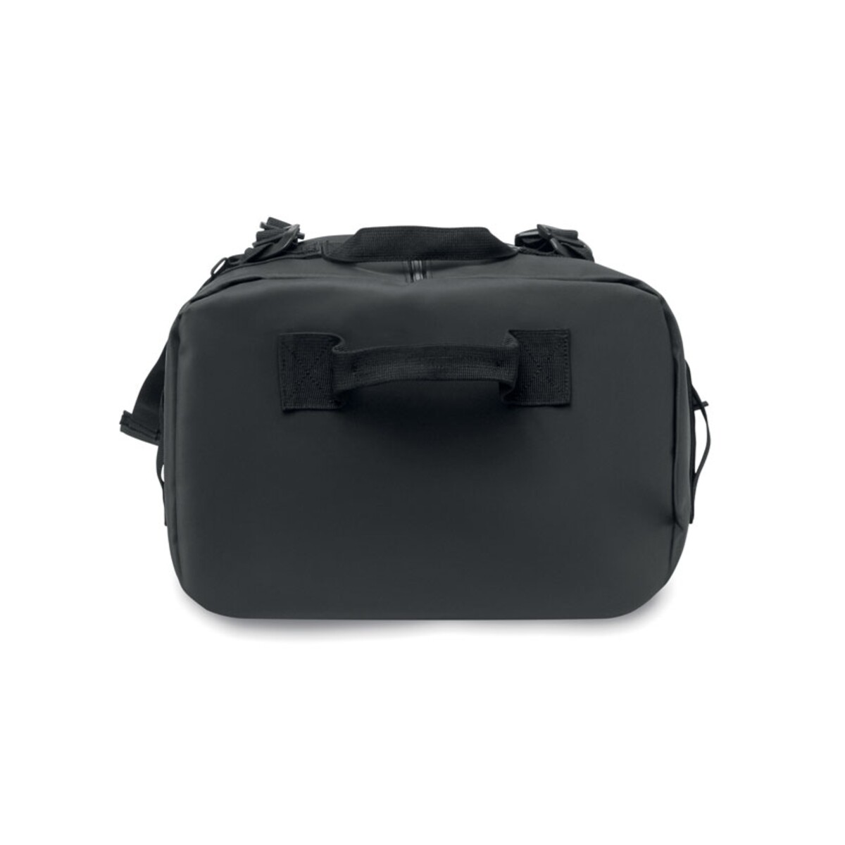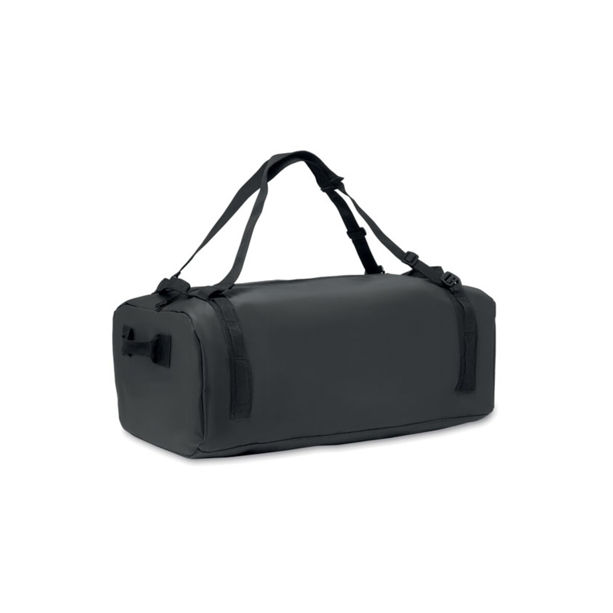 Podróżna torba tarpaulin MOUNTAIN ma przemyślaną konstrukcję: pojemną komorę główną z wewnętrzną, zapinaną na zamek przegrodą, odpinany i regulowany pasek na ramię oraz wygodne uchwyty pozwalające nosić ją również jak plecak. Wymiary 60×36×25 cm i waga 0,900 kg gwarantują odpowiednią pojemność przy zachowaniu niewielkiej masy, a materiał tarpaulin i kolor czarny podkreślają jej profesjonalny charakter. Podszewka wykonana z RPET wspiera działania proekologiczne Twojej marki.