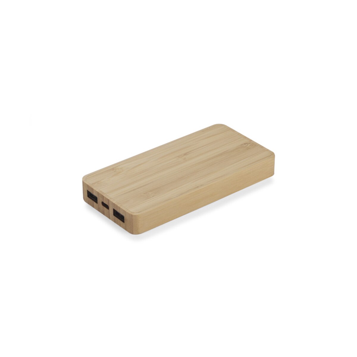 Naturalna obudowa z bambusu to nie tylko ukłon w stronę środowiska, lecz także genialna powierzchnia pod nadruk lub grawer. Umieszczając tu swoje logo, otrzymujesz elegancki, praktyczny i długowieczny gadżet — wyraz troski o planetę oraz doskonały nośnik wizerunku. Dzięki dwóm wyjściom USB-A (5 V/2.1 A max) i wejściu USB-C każdy użytkownik może ładować dwa urządzenia jednocześnie i błyskawicznie doładować sam powerbank. W zestawie nie znajdziesz kabla, co daje swobodę dobrania przewodu pasującego do Twojego sprzętu.