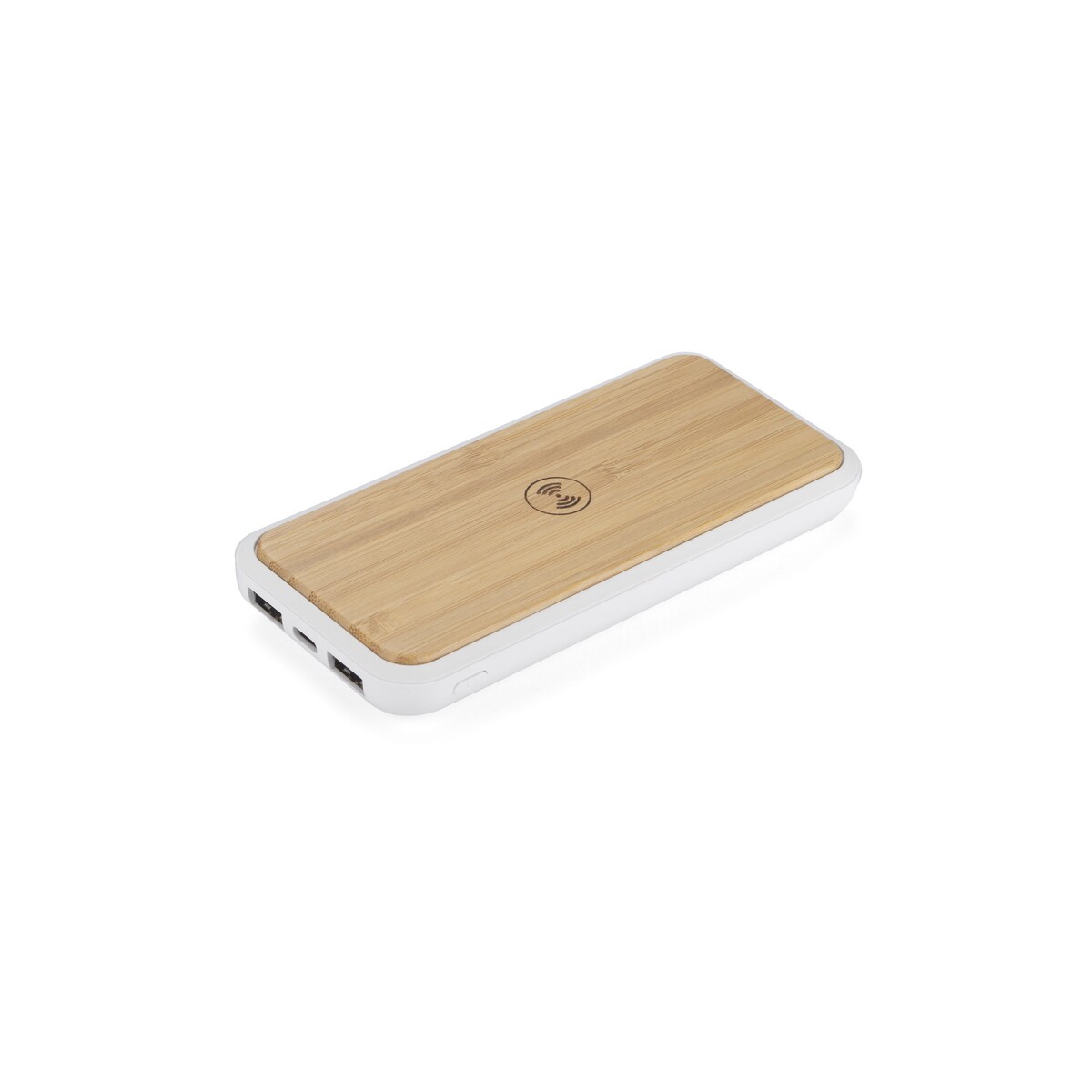 Power bank RONI 10000 mAh to wyrafinowana propozycja łącząca śnieżną biel z naturalnym bambusem, która z miejsca przyciąga wzrok i podkreśla prestiż marki 🙂. Dzięki pojemności 10 000 mAh oraz dwóm portom USB A 5 V/2.1 A, a także wejściu USB C 5 V/2 A, urządzenie gwarantuje pewne, wielokrotne ładowanie smartfonów, słuchawek czy aparatów. Funkcja ładowania bezprzewodowego sprawia, że ulubione gadżety odzyskują energię jednym ruchem, a bateria litowo-polimerowa czuwa nad bezpieczeństwem. Smukła bryła 71 × 150 × 20 mm i waga zaledwie 275 g sprawiają, że bez trudu zmieścisz go w torebce lub plecaku, nie tracąc miejsca na inne drobiazgi.