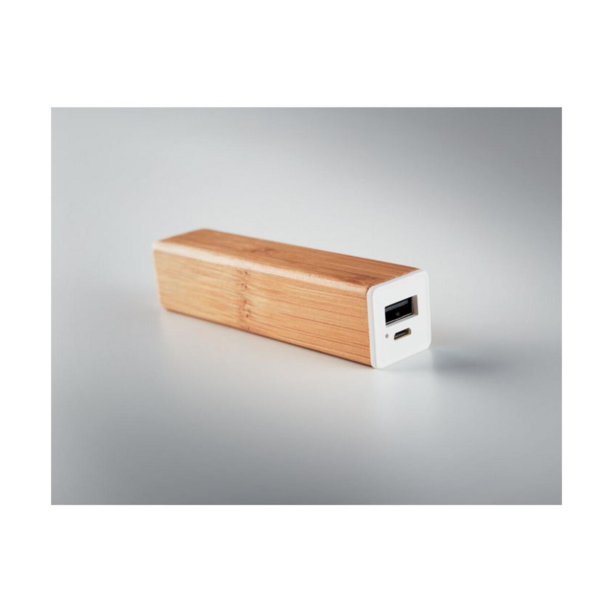Powerbank 2000mAh POWERBAM to ekologiczny, a zarazem niezwykle praktyczny gadżet, który sprawdzi się w każdej kampanii promocyjnej. Wykonany z naturalnego bambusa o wymiarach 10 × 2,4 × 2,4 cm i wadze zaledwie 101 g, zachwyca niepowtarzalnym rysunkiem słojów, dzięki czemu każdy egzemplarz jest unikatowy. Pojemność 2200 mAh (DC 5V/1A) z powodzeniem zasili smartfony, słuchawki czy opaski fitness, a wbudowana lampka LED poinformuje o poziomie energii. Do zestawu dołączono kabel USB–micro USB oraz praktyczne złącze typu C, co czyni urządzenie kompatybilnym z większością nowoczesnych telefonów. 🙂