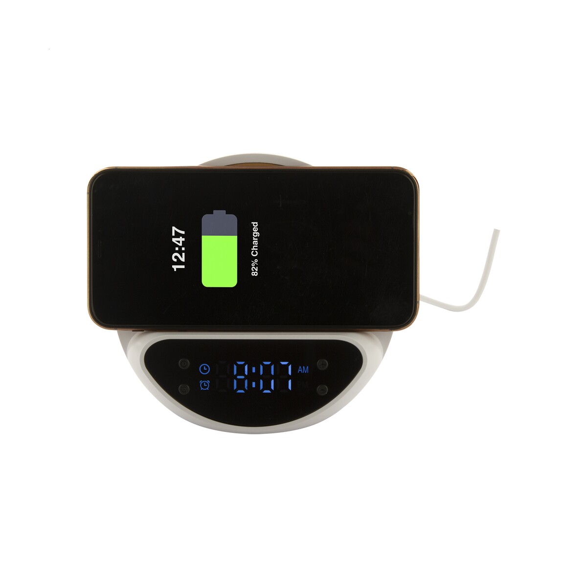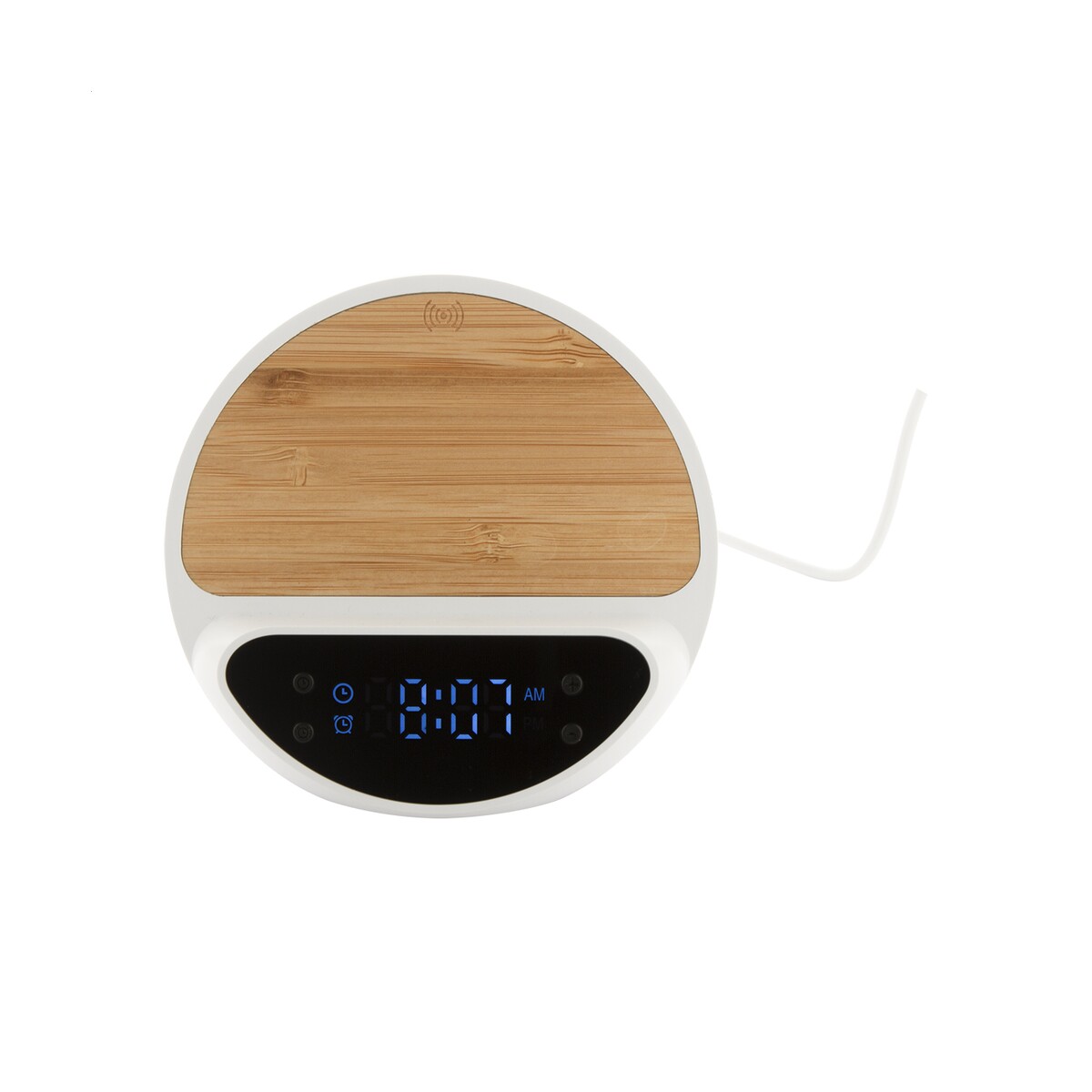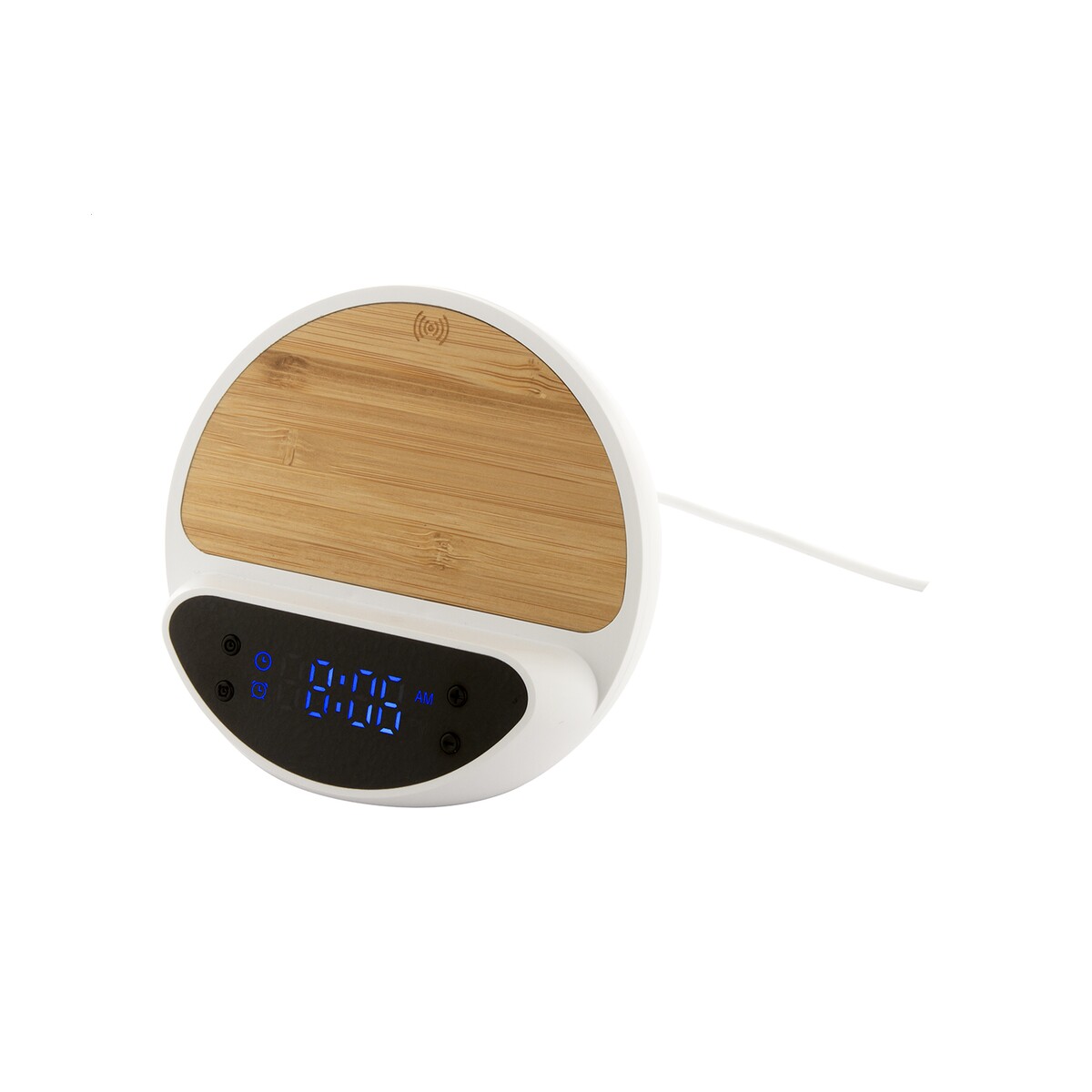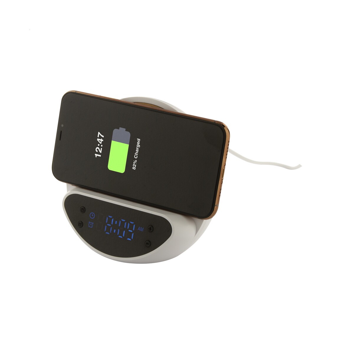 Rabolarm zegar z ładowarką indukcyjną to znakomity gadżet 2-w-1, który łączy funkcję cyfrowego budzika z ładowarką indukcyjną 15 W. Wykonany z przyjaznego środowisku połączenia przetworzonego ABS i naturalnego bambusa, wyróżnia się nowoczesnym stylem pasującym do każdego biura czy sypialni. Kompaktowe wymiary 125×120×75 mm i niewielka waga 220 g sprawiają, że z łatwością zmieści się na biurku, recepcji lub stoliku nocnym, a biały kolor elegancko podkreśli każde wnętrze 🙂.