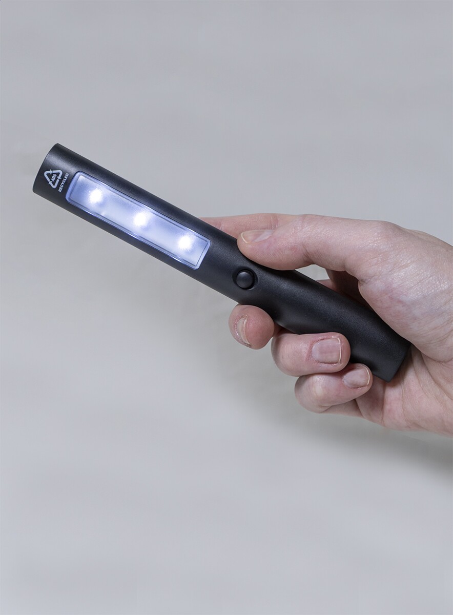 Ramerg Latarka samochodowa ratunkowa RABS to niewielki, lecz niezwykle funkcjonalny gadżet, który zamieni bagażnik każdego auta w centrum szybkiej pomocy 🙂 Wykonana z przyjaznego środowisku, pochodzącego z recyklingu ABS, mierzy jedynie 22×160×16 mm i waży zaledwie 30 g, dlatego nie zajmie cennego miejsca, a w awaryjnej sytuacji zapewni mocne światło z 3 diod LED. Wbudowane magnesy umożliwiają stabilne umocowanie latarki do karoserii, co pozwala na obsługę bez użycia rąk – niezastąpioną podczas zmiany koła czy oznaczania miejsca postoju po zmroku.