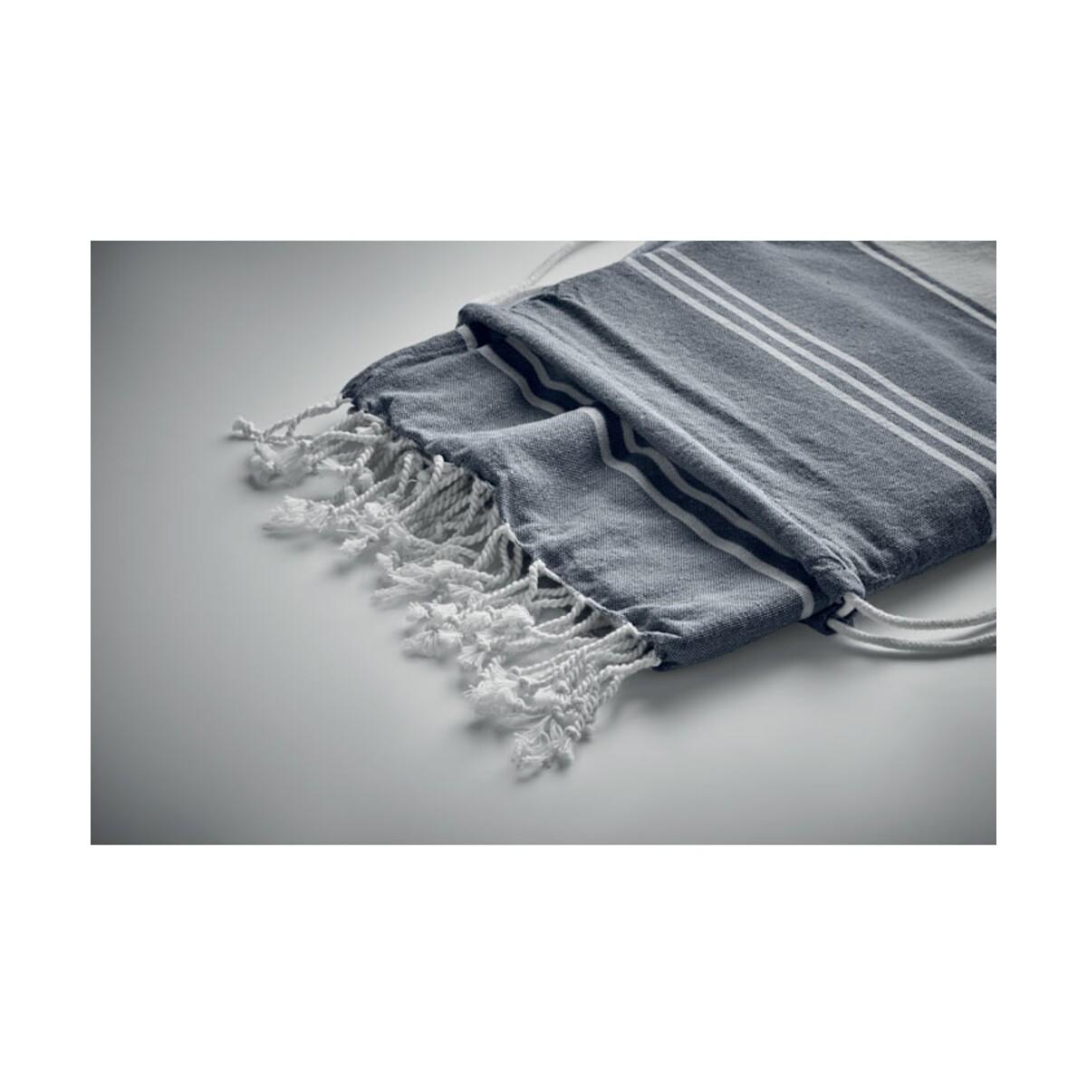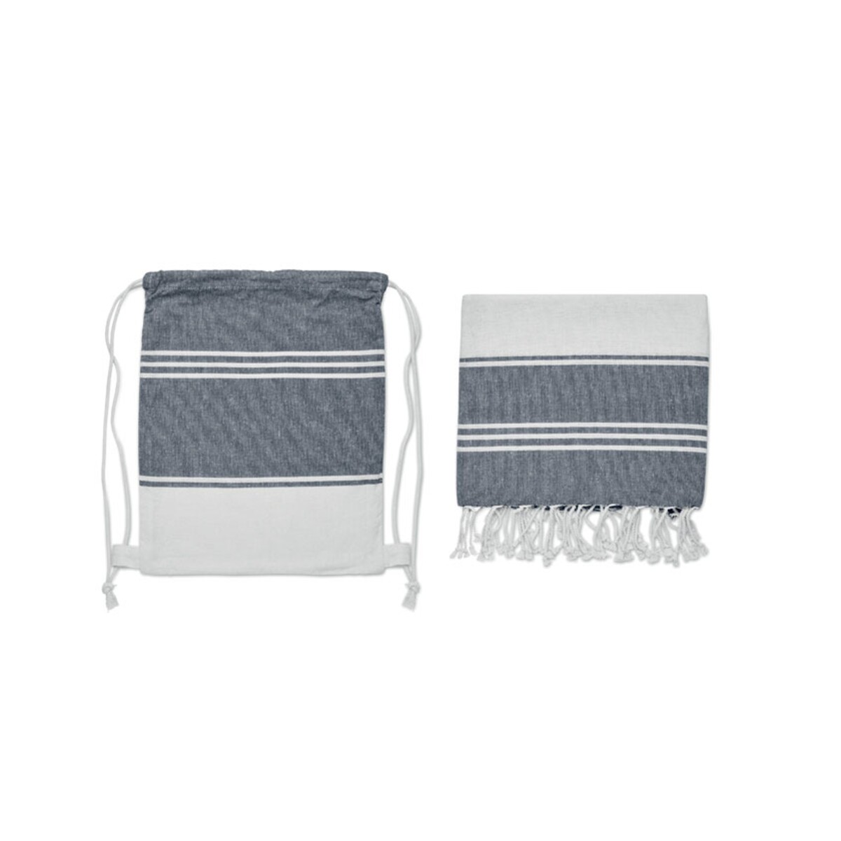 Ręcznik hammam z workiem HAMMA to znakomity sposób, aby wyróżnić się podczas letnich kampanii promocyjnych i wprowadzić powiew świeżości do kolekcji firmowych tekstyliów. Lekka tkanina o splocie 70% bawełny z recyklingu i 30% poliestru z recyklingu 180 g/m² sprawia, że ręcznik szybko schnie, jest przyjemny w dotyku i łatwo mieści się w dołączonym worku ze sznurkiem 🙂. Dzięki obrzeżom w modnych odcieniach turkusu, niebieskiego lub szarości produkt przyciąga oko, a jednocześnie stanowi perfekcyjne tło pod logo lub nadruk reklamowy.