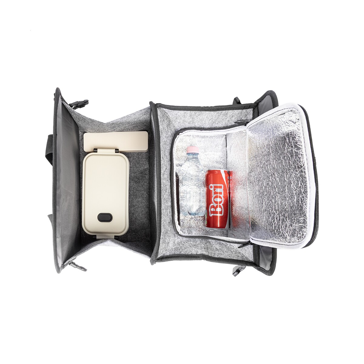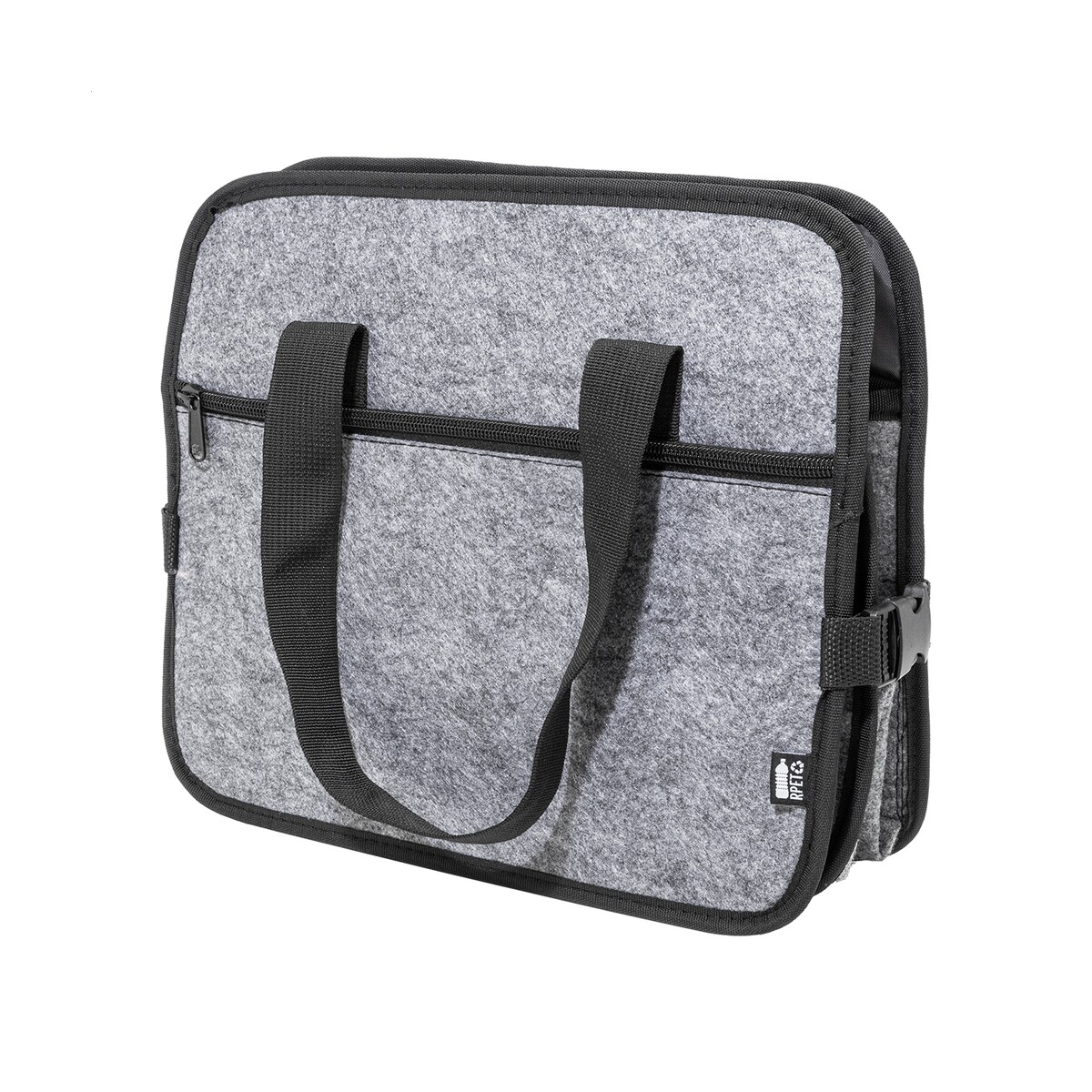 Organizer jest Składany, więc po złożeniu zajmuje minimalną ilość przestrzeni, a rozkłada się w sekundę. Pojemna komora główna plus przegroda termiczna z aluminiową wyściółką to znakomite rozwiązanie do transportu chłodnych napojów czy świeżych produktów spożywczych. Z przodu znajduje się praktyczna kieszeń na zamek, w której schowasz drobiazgi, dokumenty lub klucze. Długie uchwyty oraz boczne klamry ułatwiają przenoszenie torby także poza bagażnikiem, a neutralny Kolor: szary świetnie komponuje się z wnętrzem większości aut 🚗. Charakterystyczna metka RPET podkreśla odpowiedzialny charakter produktu.