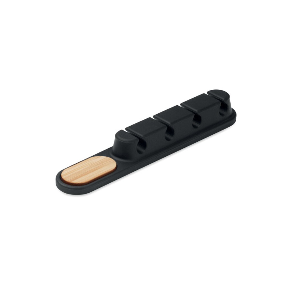 Kluczowe cechy produktu: Wymiary: 11x2x1.5 cm, Waga: 0,025 kg, Materiał: silicone, Kolory: czarny, biały. Elastyczna powierzchnia pewnie trzyma różnej grubości kable, a bambusowa wstawka znakomicie eksponuje logo w technologii laserowej. Ten niewielki gadżet to nie tylko praktyczny drobiazg – to skuteczne narzędzie reklamowe, które buduje pozytywne skojarzenia z marką oraz pokazuje, że troszczysz się o porządek i środowisko.
