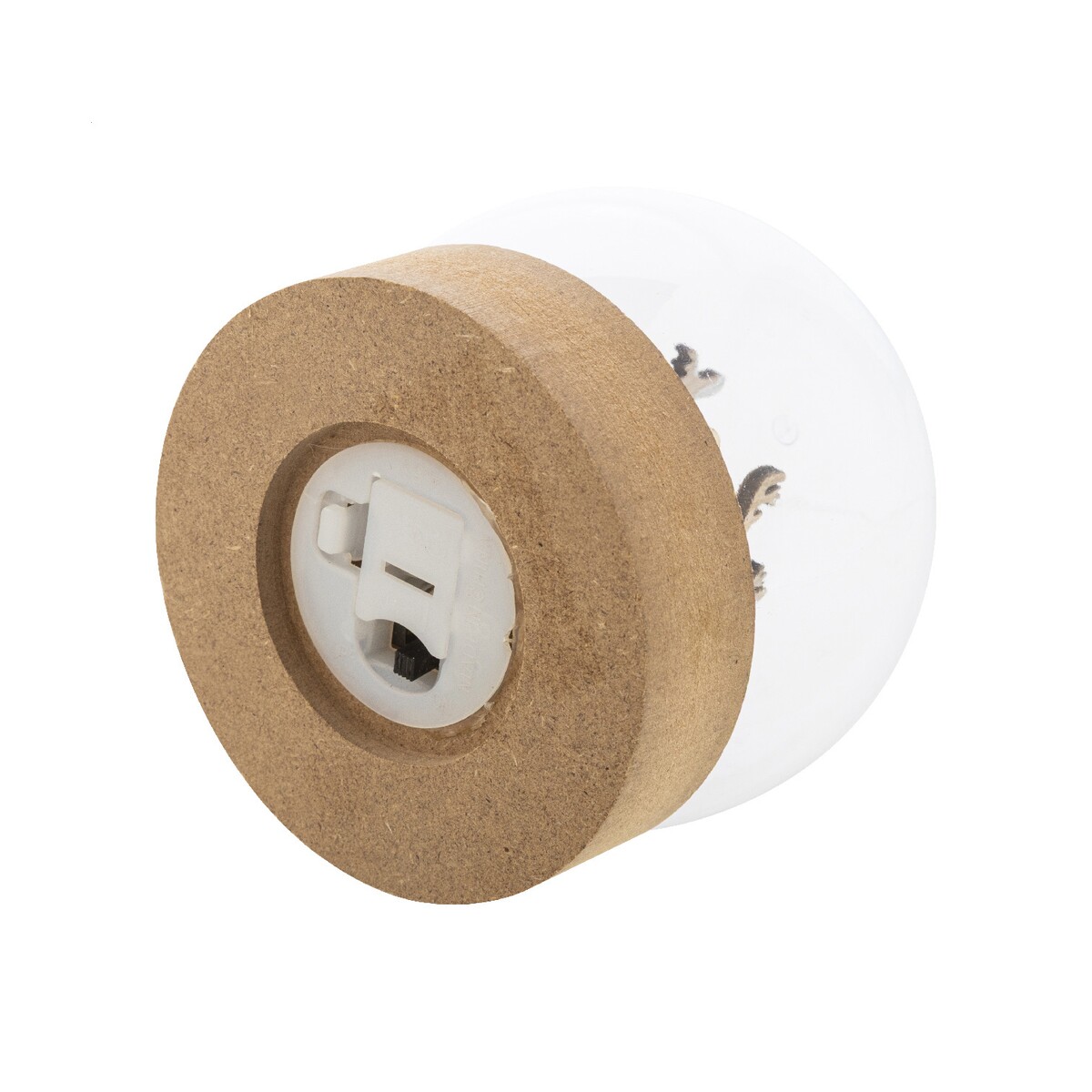 Sirius Dekoracja świąteczna 🎄 to wyjątkowo efektowny gadżet, który odmieni każde bożonarodzeniowe wnętrze i stanie się doskonałym nośnikiem Twojego logo. Podświetlana kula śnieżna o wymiarach ø75×80 mm osadzona jest na eleganckiej podstawie z naturalnego drewna MDF, co podkreśla ekologiczny charakter produktu i sprawia, że prezentuje się niezwykle stylowo. Ciepłe światło LED, zasilane dołączonymi bateriami guzikowymi, tworzy przytulny klimat, a praktyczny przycisk WŁ./WYŁ. pozwala łatwo zarządzać iluminacją ✨.