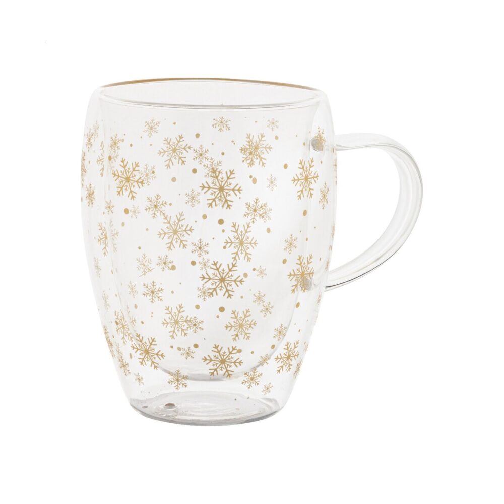 Snostro Świąteczny szklany kubek termiczny to wyjątkowy gadżet, który łączy w sobie elegancję przezroczystego szkła borokrzemowego z funkcjonalnością podwójnych ścianek, utrzymujących temperaturę napoju przez długi czas 😊. Dzięki pojemności 350 ml oraz subtelnemu motywowi śnieżnego płatka staje się on nie tylko praktycznym, lecz również dekoracyjnym akcentem świątecznego stołu. Transparentna powierzchnia umożliwia wyeksponowanie aromatycznej kawy, grzańca lub gorącej czekolady, a przestrzeń pomiędzy ściankami sprawia, że napój dłużej pozostaje gorący, a zewnętrzna ścianka nie parzy dłoni.