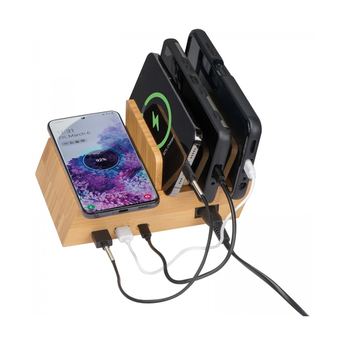 Podsumowując, ten doskonały gadżet ładujący 4 urządzenia naraz, wykonany z bambusa, z możliwością personalizacji przez nadruk lub grawer, to perfekcyjne rozwiązanie dla Twojej firmy, gdy szukasz przedmiotu, który zachwyci funkcjonalnością, designem i eko-charakterem, a jednocześnie wyróżni się na tle innych akcesoriów promocyjnych.
