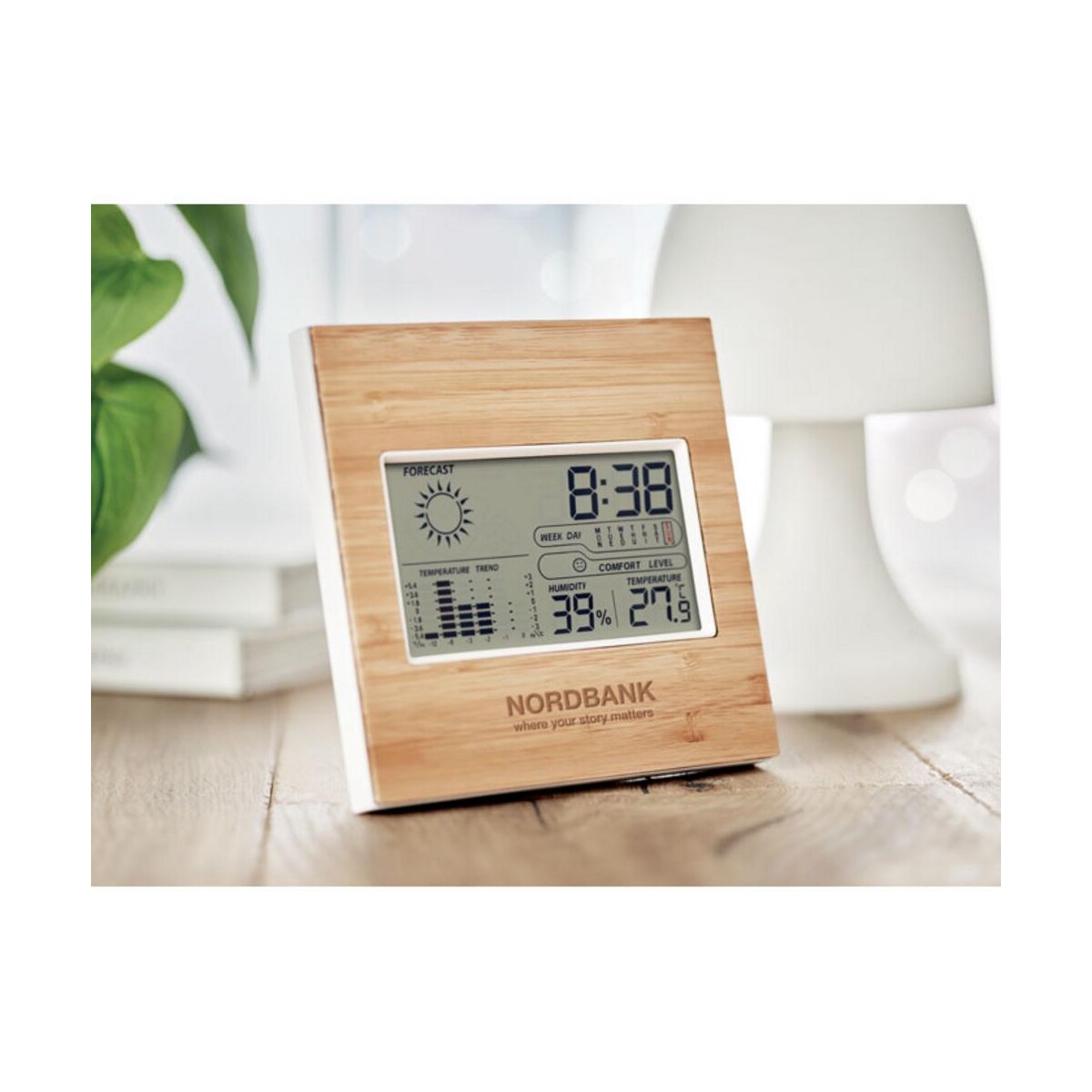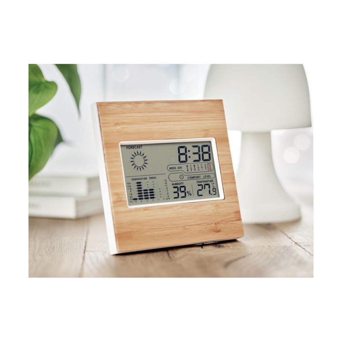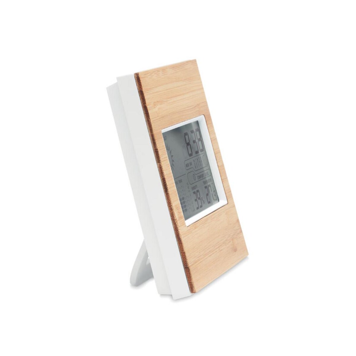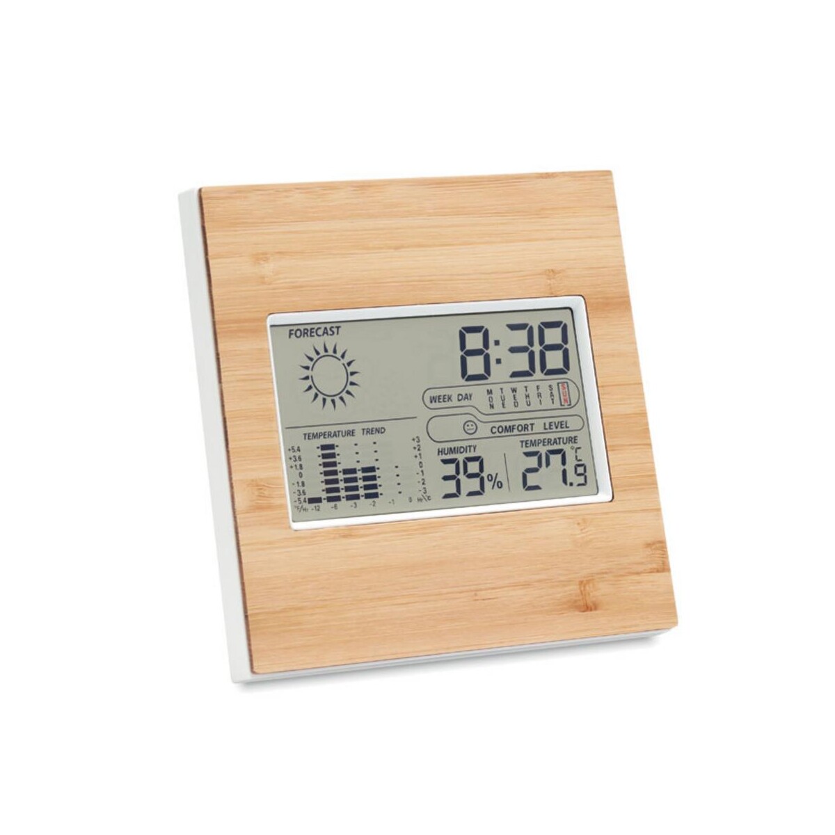 Stacja pogodowa z bambusem TURKU to nowoczesny, a zarazem przyjazny środowisku gadżet, który znakomicie wzbogaci biurko, recepcję czy domową półkę. Jej obudowę wykonano z naturalnego bambusa, dzięki czemu każdy egzemplarz wyróżnia subtelna, niepowtarzalna struktura drewna. W kompaktowych wymiarach 13 × 2,3 × 13 cm i przy wadze zaledwie 0,201 kg kryje się wielofunkcyjny wyświetlacz prezentujący godzinę, kalendarz oraz aktualne wskazania temperatury i wilgotności. Tak kompleksowa informacja o mikroklimacie pomieszczenia sprawia, że Stacja pogodowa z bambusem TURKU jest wręcz wymarzonym wsparciem w codziennym planowaniu dnia – od wyboru stroju po właściwe nawadnianie roślin 🌿.