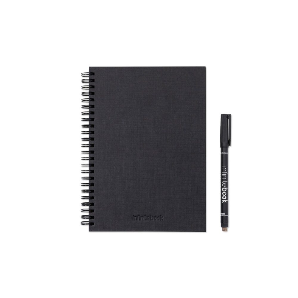 STARTER KIT INFINITEBOOK A5 PLANNER TEXTURE. Zestaw zawierający „Infinitebook” w twardej oprawie, 1 zestaw do czyszczenia, 1 marker i 1 uchwyt na długopis