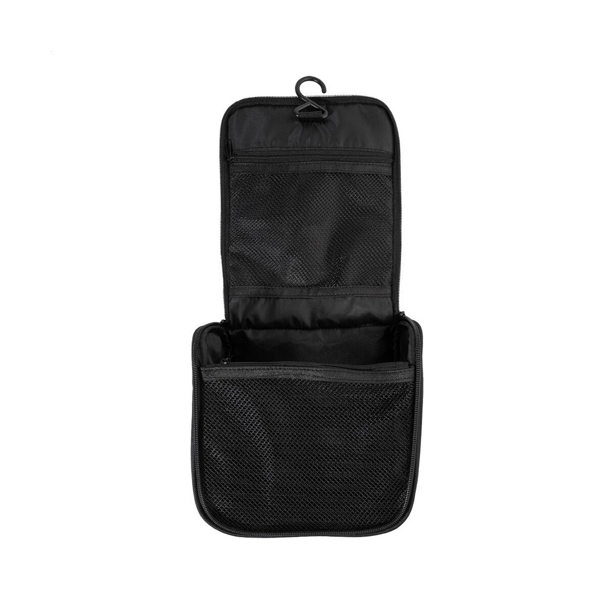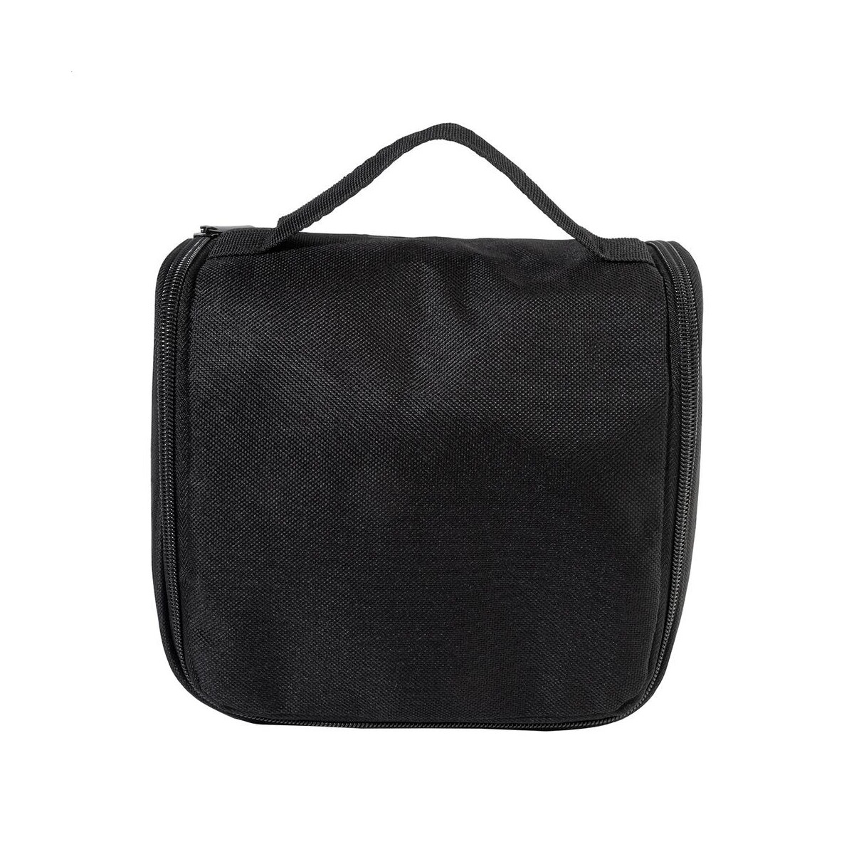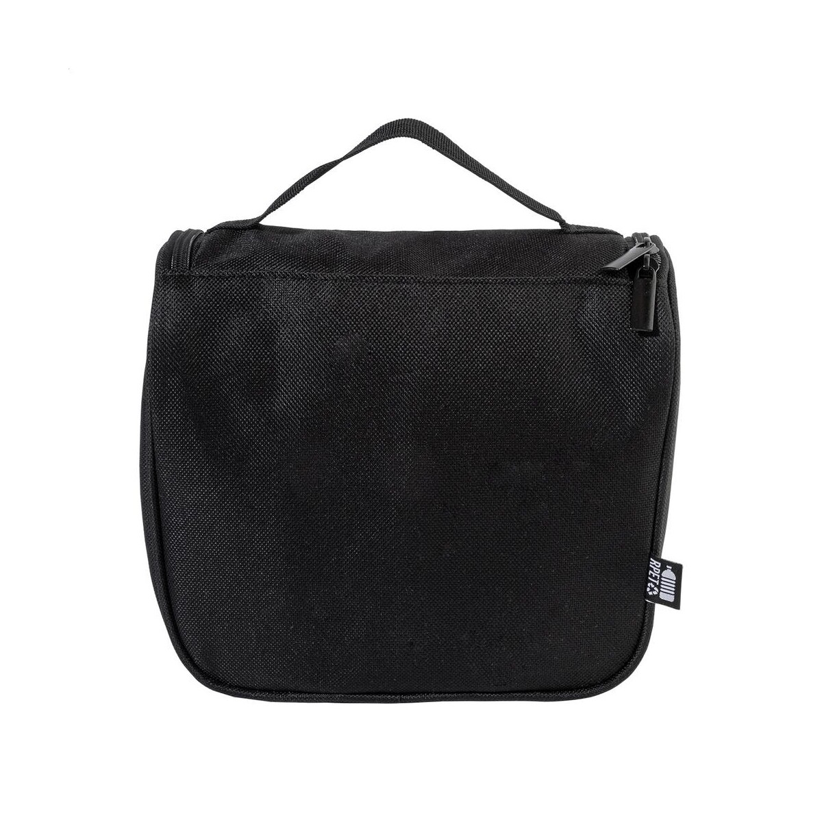 Susity wisząca kosmetyczka RPET to nowoczesny, poręczny i ekologiczny gadżet, który zachwyci każdego, kto ceni wygodę pakowania oraz dbałość o środowisko 😊. Wykonana z trwałego materiału 600D Poliester z recyklingu PET, wyróżnia się wagą zaledwie 74 g i kompaktowymi wymiarami 200 × 180 × 90 mm. Dzięki temu bez trudu zmieści się w plecaku, walizce czy szufladzie biurka, a po rozwieszeniu w łazience lub hotelowym pokoju uwolni cenną przestrzeń. Czarny kolor stanowi eleganckie tło dla każdego logo, które możemy wyeksponować metodą trwałego nadruku.