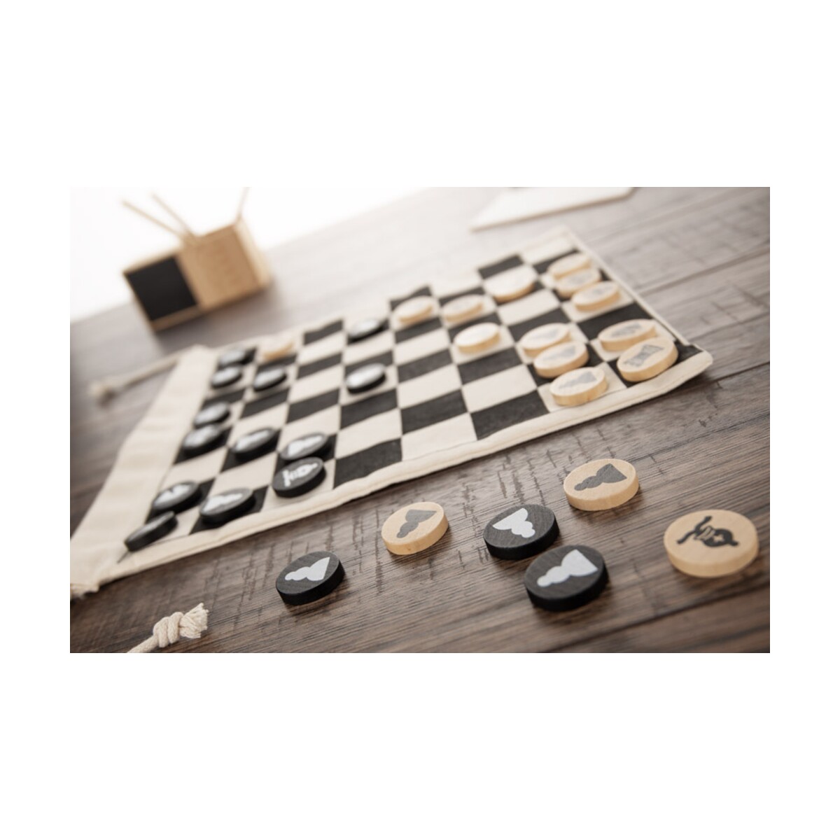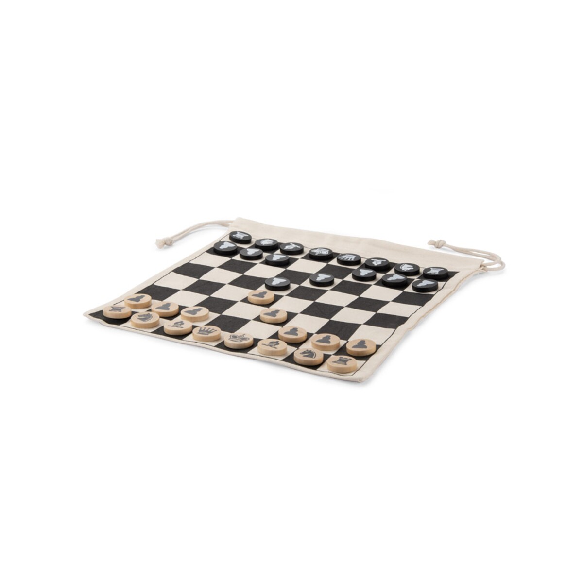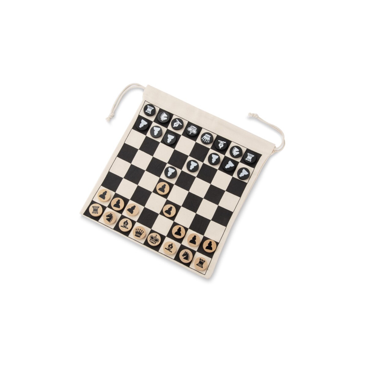 Szachy w woreczku ROYAL to podróżna odsłona królewskiej gry, która zachwyci zarówno koneserów strategicznych pojedynków, jak i osoby szukające oryginalnego upominku biznesowego. Bawełniany woreczek o wymiarach 270 x 300 x 5 mm, w którym znajduje się komplet drewnianych figur, pełni podwójną funkcję – kiedy go rozłożysz, staje się planszą, a po skończonej rozgrywce bezpiecznie przechowa pionki o łącznej wadze zaledwie 130 g. Naturalne kolory oraz ekologiczne materiały – bawełna i drewno – przyciągną uwagę odbiorców, dla których liczy się styl zgodny z naturą 🌱.