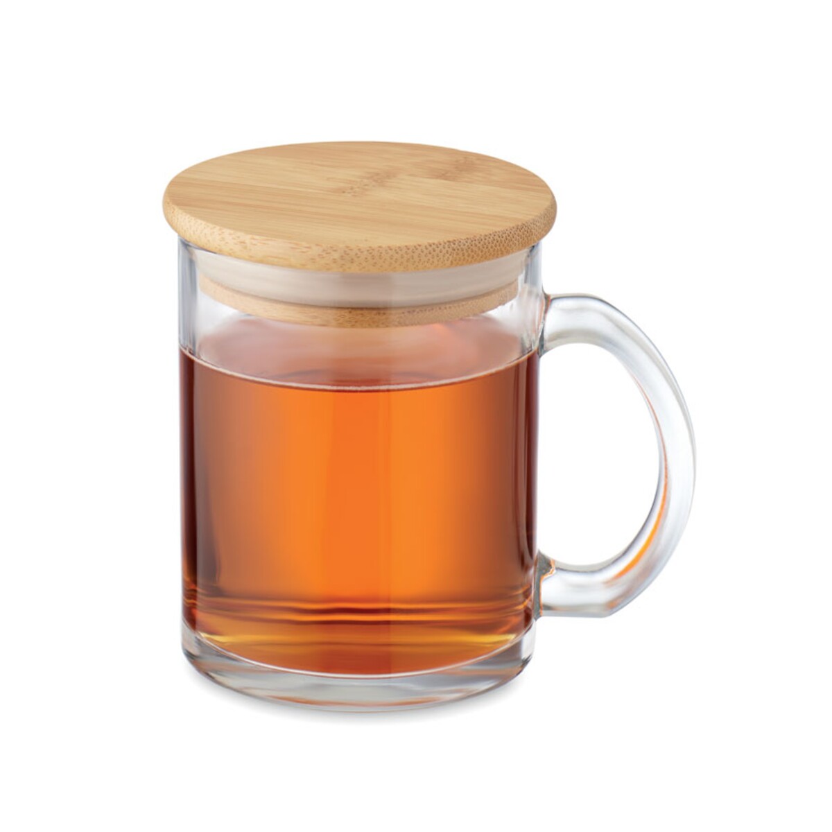 Szklany kubek 300 ml recykling CELESTIAL to niezwykle atrakcyjny gadżet, który zachwyci partnerów biznesowych, klientów oraz pracowników 😊. Wykonany z odzyskanego szkła o krystalicznej przejrzystości, z urokliwą bambusową pokrywką, stanowi ekologiczne i estetyczne uzupełnienie biurka, domowej kuchni czy przestrzeni kawiarnianej. Ten kubek jest wręcz doskonały do promocji marek z branży ekologicznej, spożywczej, wellness, a także hoteli i biur podróży – wszędzie tam, gdzie liczy się troska o środowisko i designerskie akcenty.
