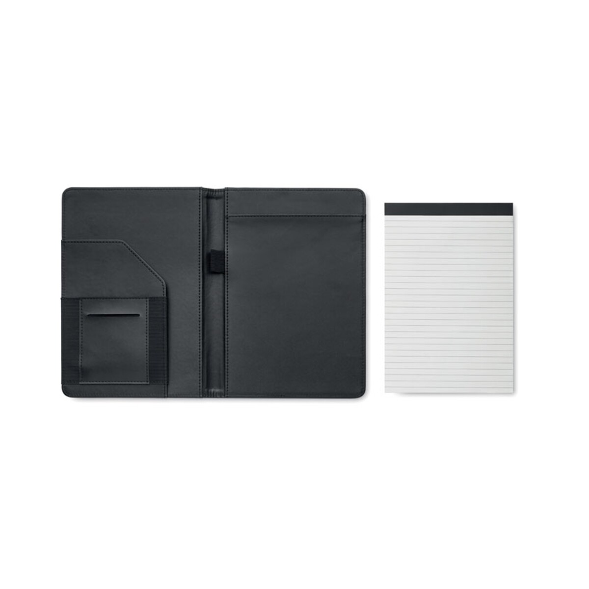 Na szczególną uwagę zasługują jego Wymiary: 17×1,3×24 cm oraz niewielka Waga: 0,280 kg, dzięki czemu Teczka A5 300D RPET FOLIO mieści się w torbie lub plecaku, nie obciążając ich zawartości. Wykonana z ekologicznego, wytrzymałego materiału Materiał: RPET 300D stanowi świadomy wybór firm dbających o środowisko. W zestawie znajduje się wymienny notatnik A5 – 40 stron z papieru bambusowego (20 arkuszy), uchwyt na długopis, wewnętrzna kieszonka na karty oraz duża przegroda na dokumenty, co ułatwia segregowanie ważnych materiałów. Całość utrzymana jest w eleganckim Kolor: czarny, idealnie komponującym się z każdym wizerunkiem marki.