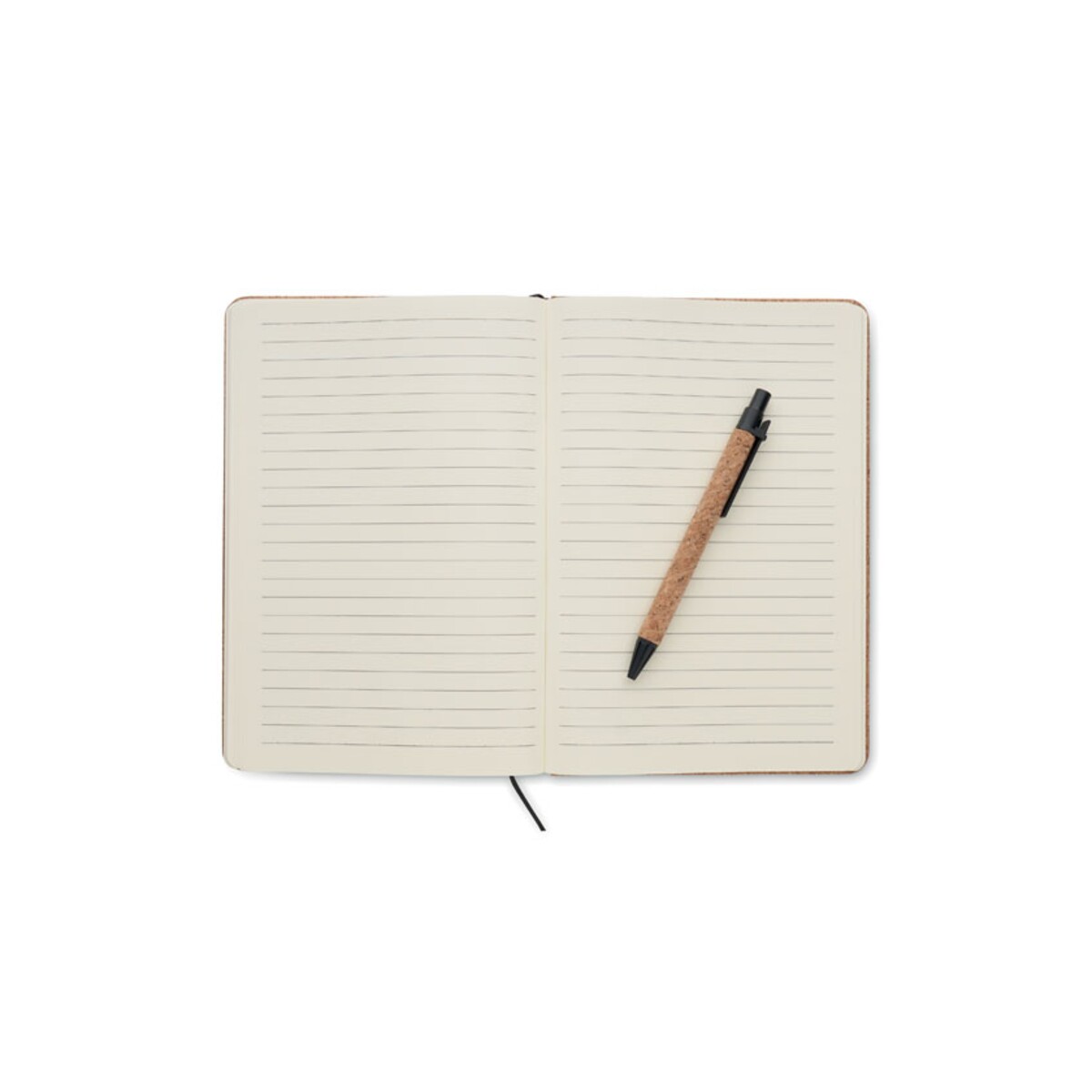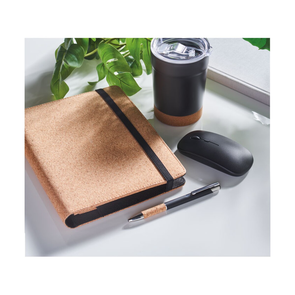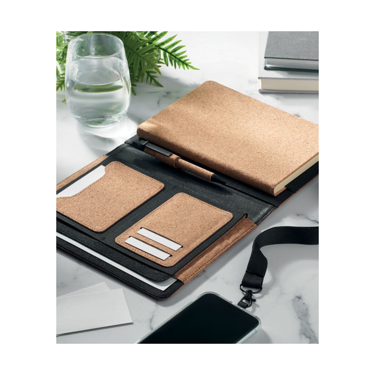 Teczka A5 z korkiem ORIGIN to prawdziwie ekologiczny gadżet, który łączy w sobie funkcjonalność notatnika i elegancję teczki. Wykonana z naturalnego korka, zachwyca ciepłym, beżowym odcieniem i przyjemną w dotyku fakturą, a jednocześnie podkreśla prośrodowiskowe wartości marki. Dzięki kompaktowym wymiarom 18×3×23 cm i wadze zaledwie 0,550 kg łatwo mieści się w torbie czy plecaku, stanowiąc doskonałe wsparcie podczas spotkań biznesowych, targów i szkoleń 😊. Aż 192 strony w linie z papieru z recyklingu (96 arkuszy) pozwolą zapisać najważniejsze pomysły, a elastyczny pasek zamykający chroni notatki przed zniszczeniem.