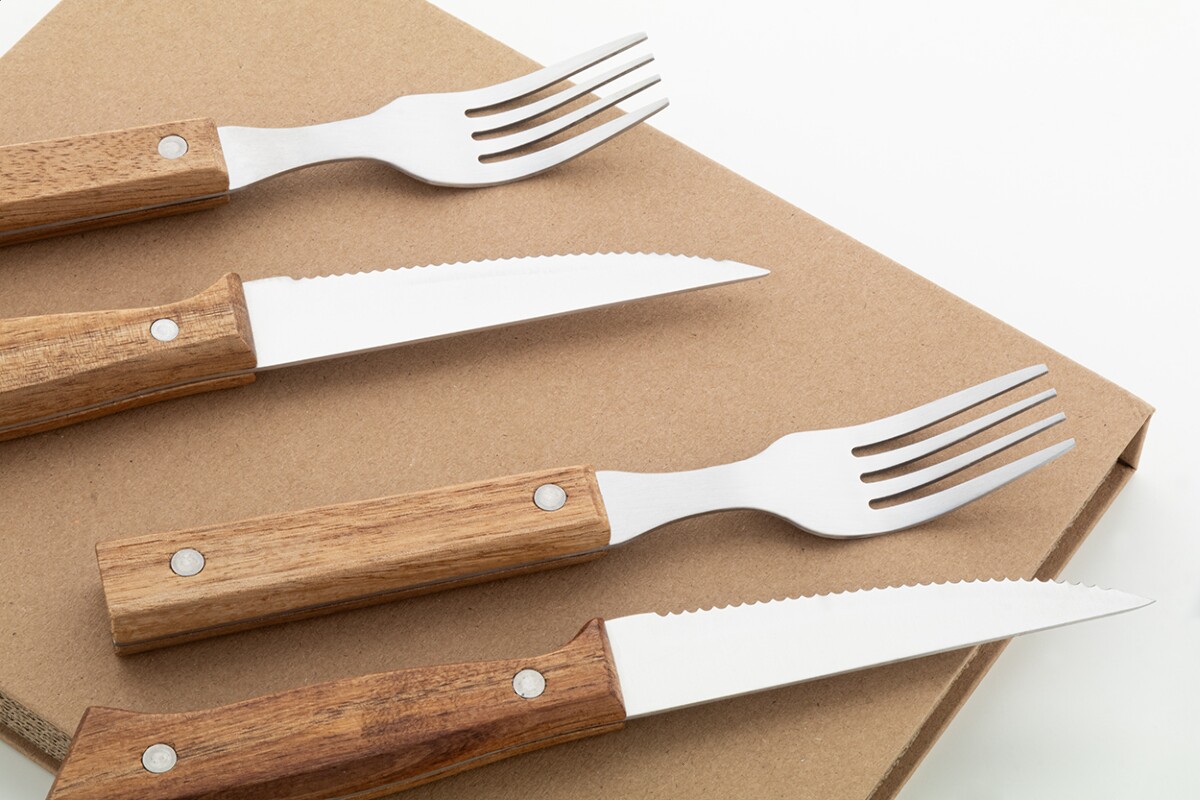 Praktyczne zastosowania są liczne: od serwowania soczystych steków podczas firmowego garden party, przez degustacje w showroomach, aż po prywatne przyjęcia, gdzie styl liczy się tak samo jak smak. Dzięki naturalnemu drewnu rączek oraz solidnej stali nierdzewnej sztućce są trwałe i łatwe w czyszczeniu, a ich elegancka estetyka sprawia, że goście zapamiętają Twoją markę na długo. Otwierane jak książka pudełko znakomicie eksponuje logo, dając efekt premium już przy pierwszym spojrzeniu 🍴. To nadzwyczajny, a zarazem funkcjonalny gadżet reklamowy, który podkreśli charakter każdej marki i będzie niezastąpionym elementem wyposażenia kuchni lub strefy barbecue.