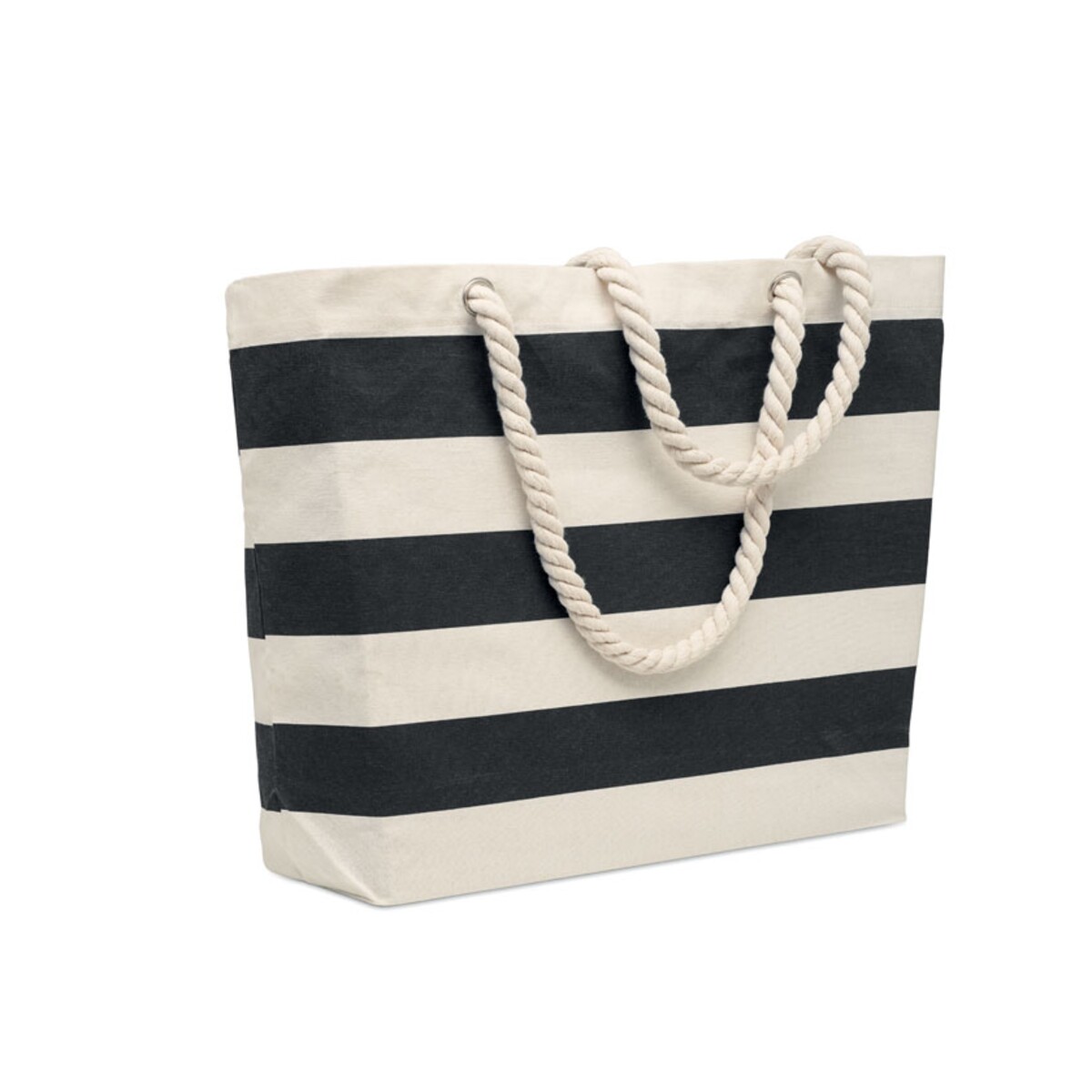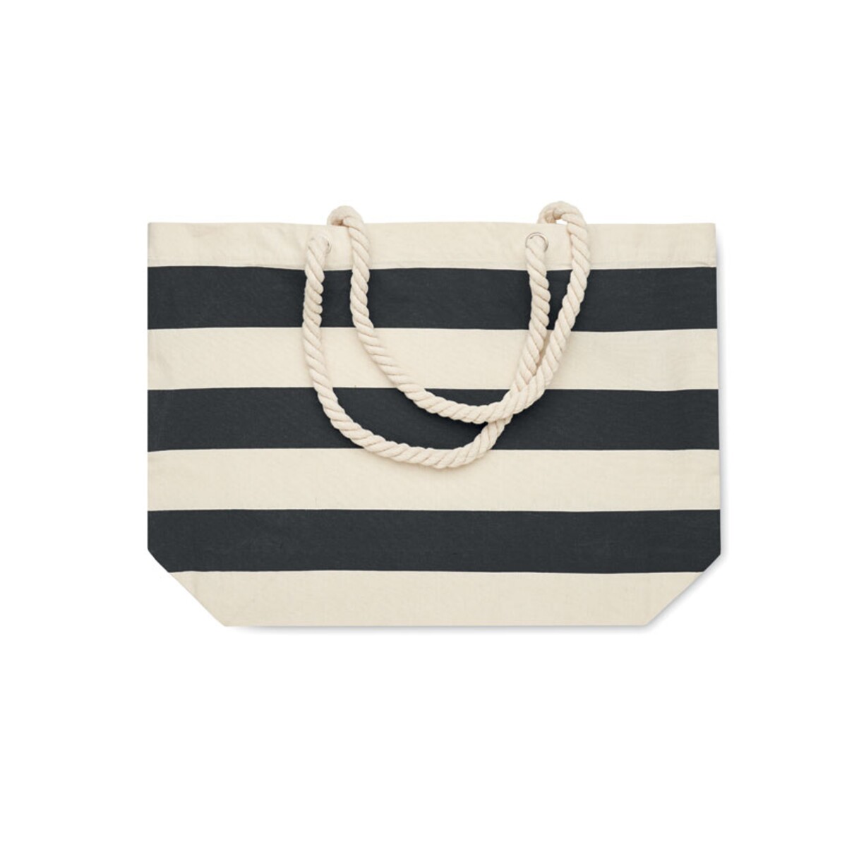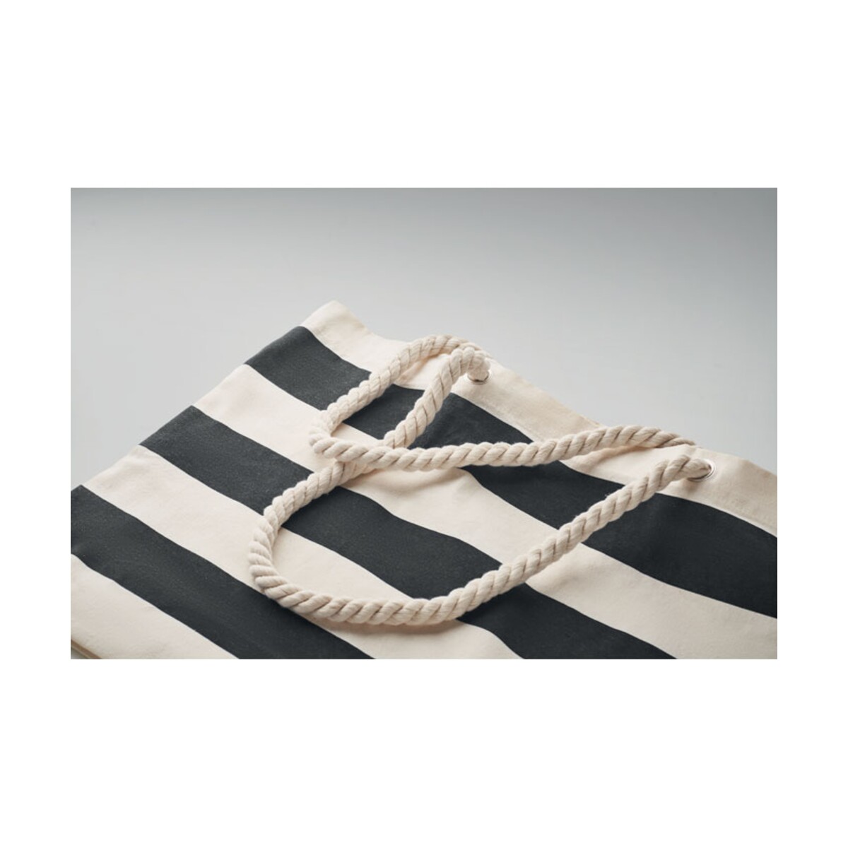 Torba plażowa bawełna 220gr/m² HEAVEN STRIPE znakomicie odnajdzie się nie tylko na plaży. Jej stylowe pasy i dostępność w kolorach: czarnym, niebieskim, błękitnym oraz białym, czynią z niej praktyczny dodatek do miejskich stylizacji. Klienci butików modowych docenią ją jako torbę na szybkie zakupy, a uczniowie lub studenci – jako lekki worek na zajęcia sportowe. Świetnie sprawdzi się w roli torby na piknik, wypad do parku, a nawet jako alternatywa dla plastikowych toreb w supermarketach. Dzięki temu, że produkt jest tak uniwersalny, staje się nadzwyczaj skutecznym nośnikiem Twojej marki.