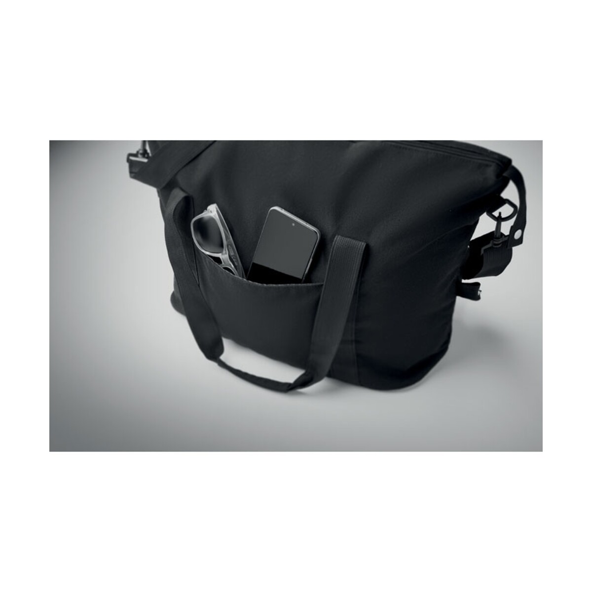 Model wyposażono w odpinany i regulowany pasek na ramię, co zwiększa komfort noszenia oraz pozwala dostosować torbę do każdej sylwetki. Dodatkowy pasek na walizkę umożliwia stabilne zamocowanie na teleskopowej rączce bagażu, co czyni ją perfekcyjnym towarzyszem podróży służbowych i rekreacyjnych. Uniwersalny czarny kolor tworzy eleganckie tło dla Twojego brandingu ― wystarczy subtelny biały nadruk lub kolorowy haft, by torba stała się mobilną wizytówką dla Twojej firmy.