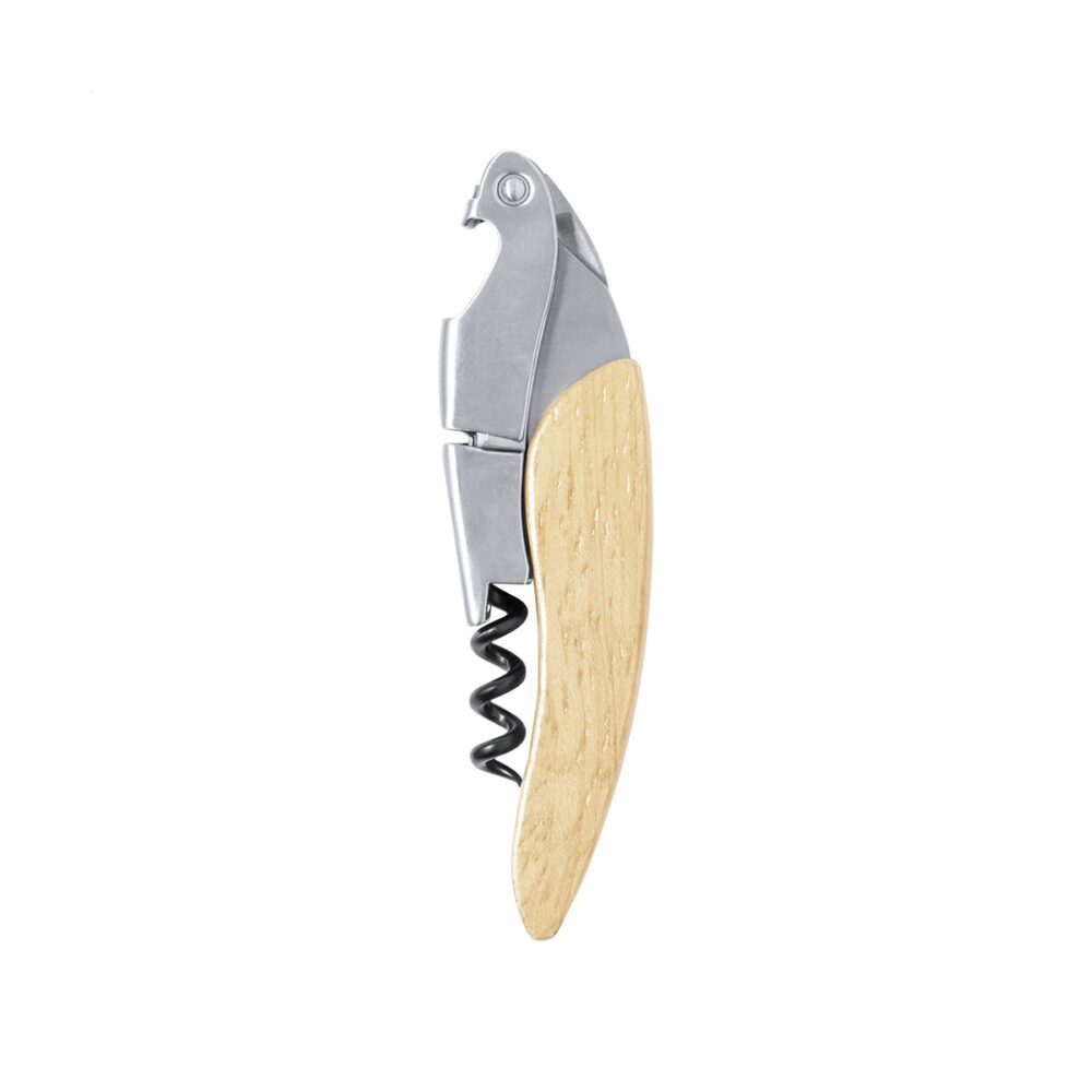 Materiał: stal nierdzewna + drewno gwarantujące wytrzymałość i wygodny chwyt. Kolory: elegancki srebrny z naturalnym drewnem pasuje do każdej stylistyki. Ten produkt z kategorii „Korkociągi z logo” oraz „Gadżety do wina z logo” to niezwykle trafny wybór dla Twojej firmy, która szuka praktycznego, a jednocześnie efektownego nośnika przekazu. Dzięki opcji personalizacji stanie się unikalnym narzędziem reklamowym, podkreślającym profesjonalizm marki, a jego wielofunkcyjne zastosowanie – od otwieracza do kapsli po klasyczny wyciągacz korków – sprawia, że klienci będą po niego sięgać raz za razem.