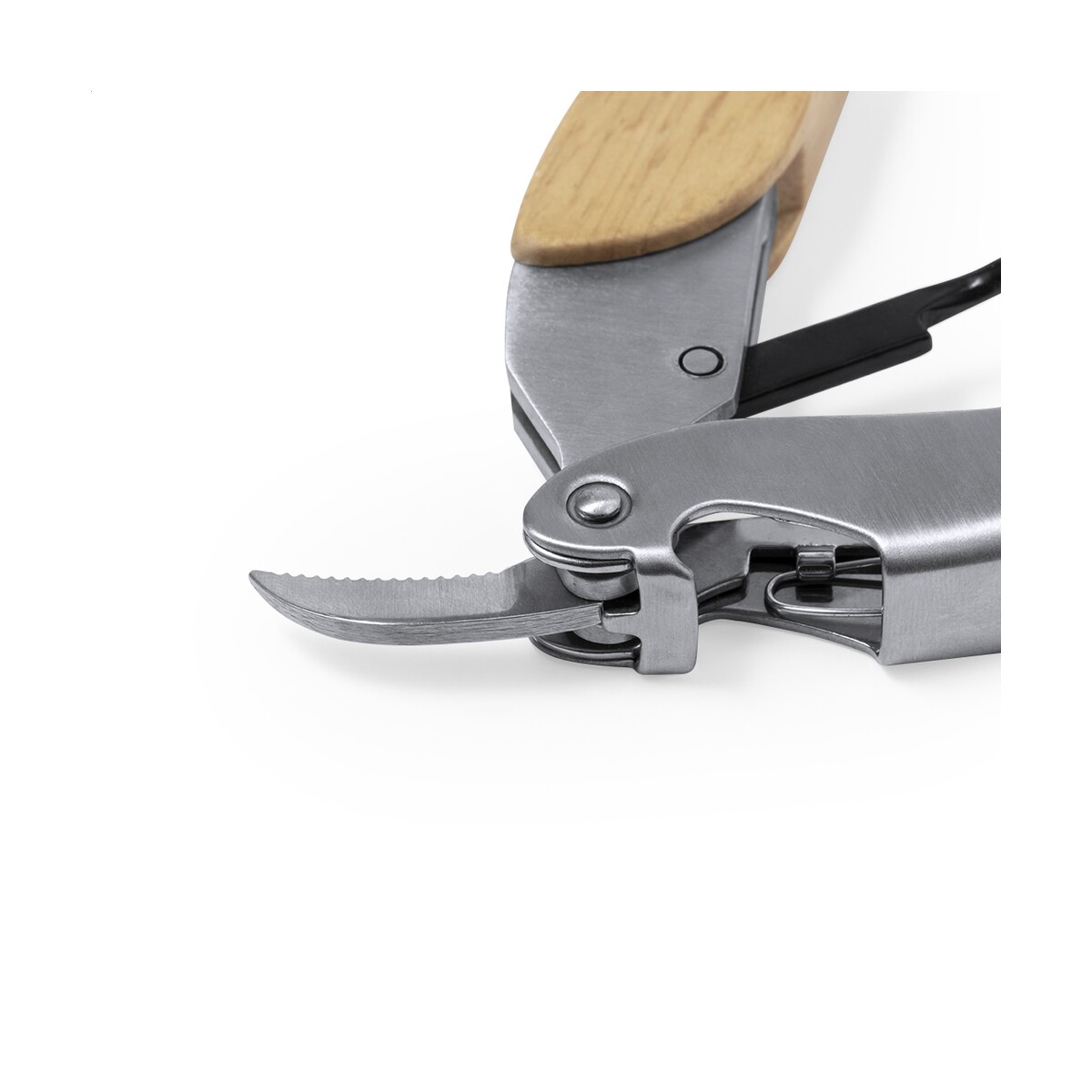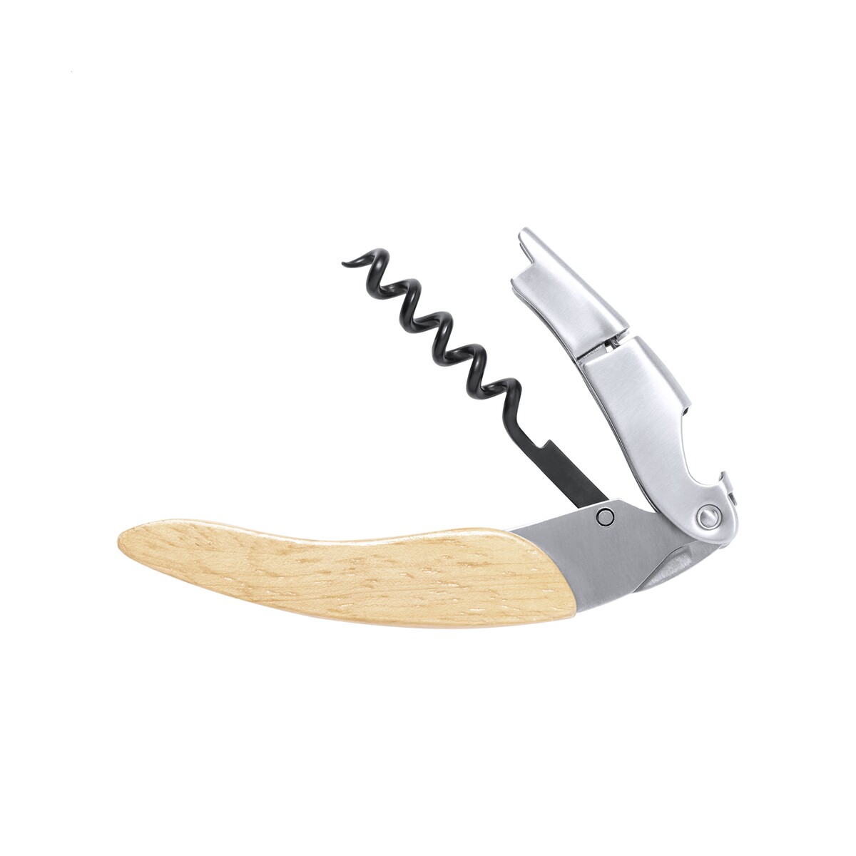 Materiał: stal nierdzewna + drewno gwarantujące wytrzymałość i wygodny chwyt. Kolory: elegancki srebrny z naturalnym drewnem pasuje do każdej stylistyki. Ten produkt z kategorii „Korkociągi z logo” oraz „Gadżety do wina z logo” to niezwykle trafny wybór dla Twojej firmy, która szuka praktycznego, a jednocześnie efektownego nośnika przekazu. Dzięki opcji personalizacji stanie się unikalnym narzędziem reklamowym, podkreślającym profesjonalizm marki, a jego wielofunkcyjne zastosowanie – od otwieracza do kapsli po klasyczny wyciągacz korków – sprawia, że klienci będą po niego sięgać raz za razem.