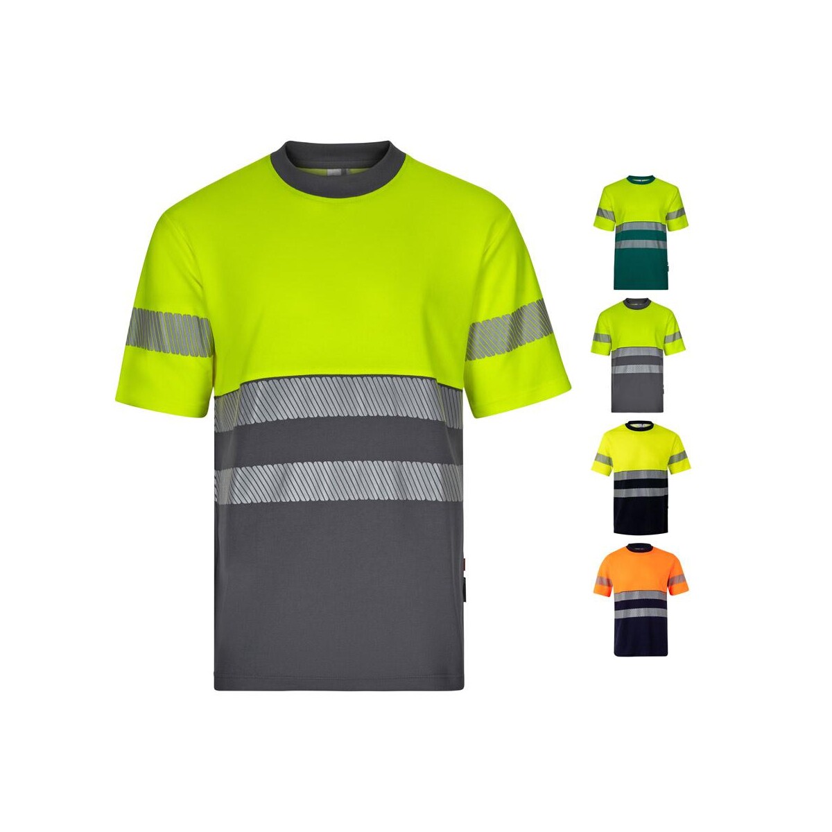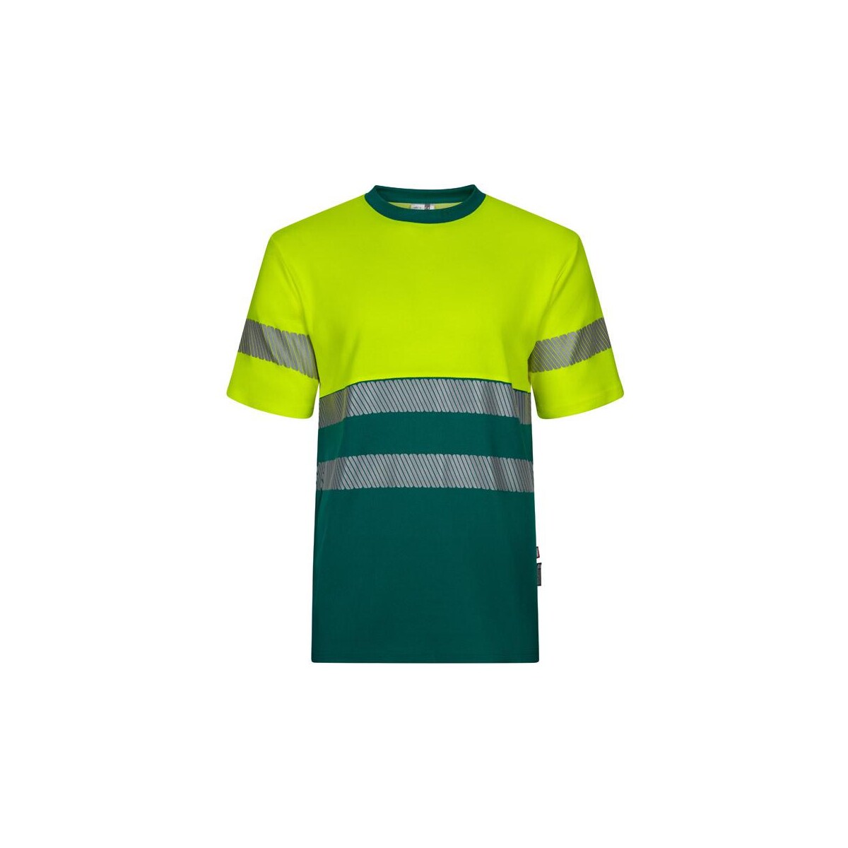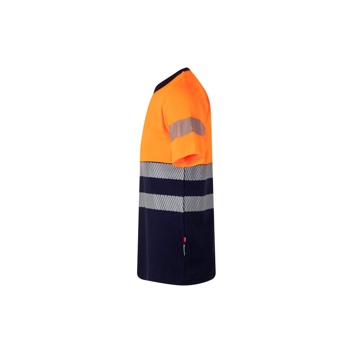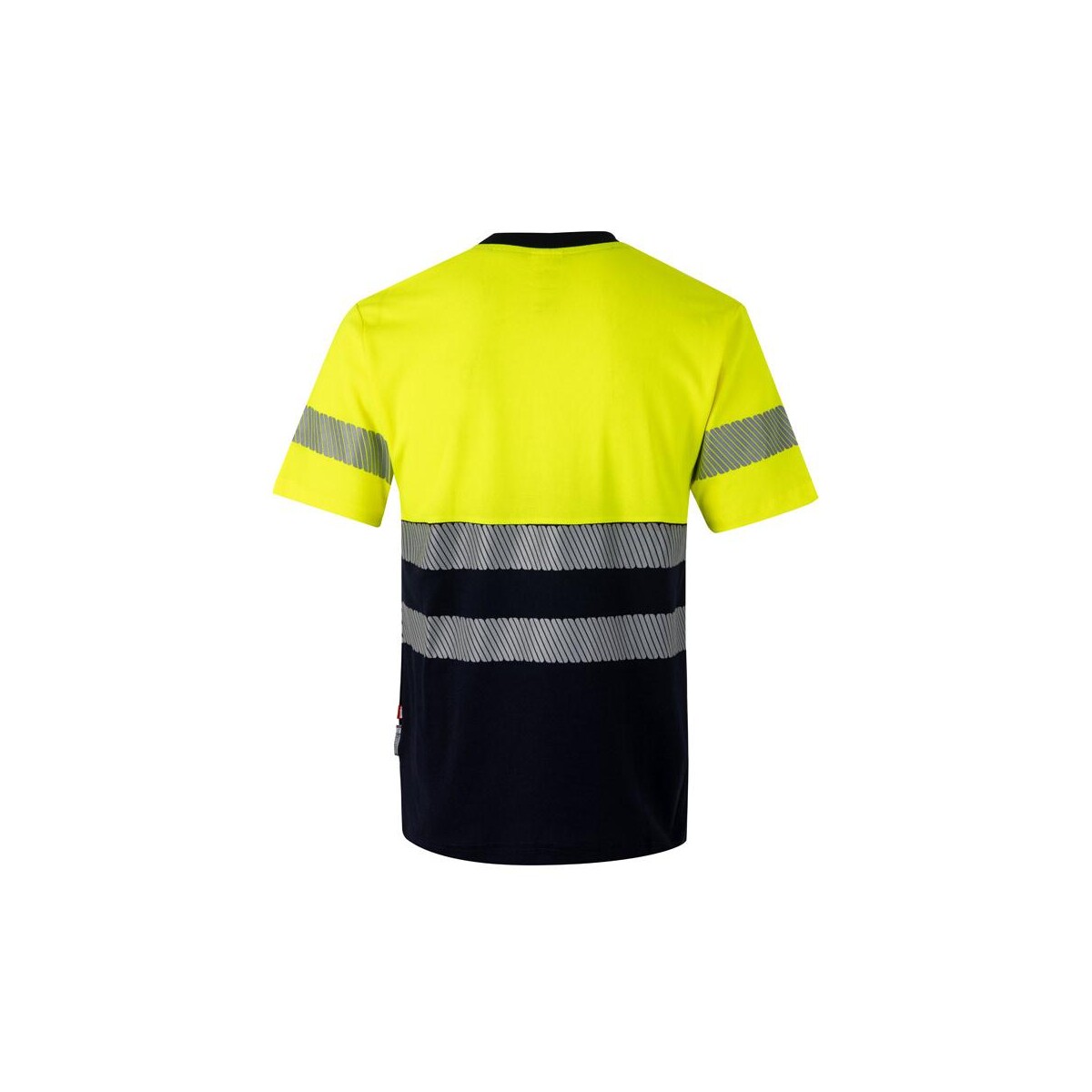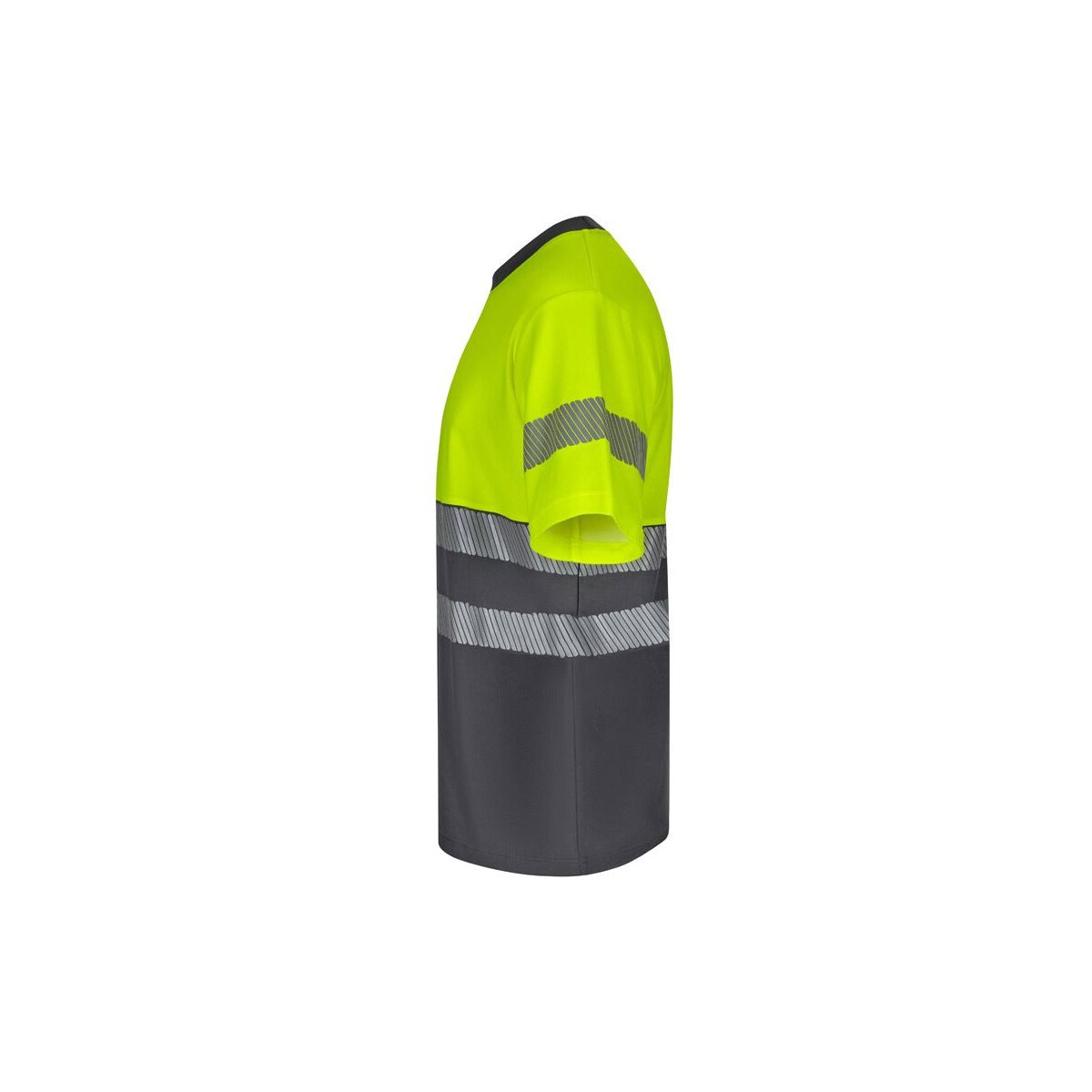 VL BASTET to dwukolorowa koszulka piqué o gramaturze 150 g/m², uszyta w proporcji 55% bawełna oraz 45% poliester. Krótkie rękawy i okrągły dekolt wykończony ściągaczem w kontrastowym kolorze nadają jej nowoczesny, sportowy charakter, a segmentowe paski odblaskowe na tułowiu i rękawach zapewniają widoczność po zmroku. Model spełnia wymagania rozporządzenia UE 2016/425, posiada certyfikat EN20471 klasa 1, co czyni go pewnym wyborem w miejscach, gdzie bezpieczeństwo idzie w parze ze stylem 🙂. Dostępność szerokiej rozmiarówki S–3XL oraz palety barw (od energetycznego żółtego, przez granat, po stonowaną szarość) pozwala łatwo dopasować koszulkę do identyfikacji wizualnej przedsiębiorstwa.