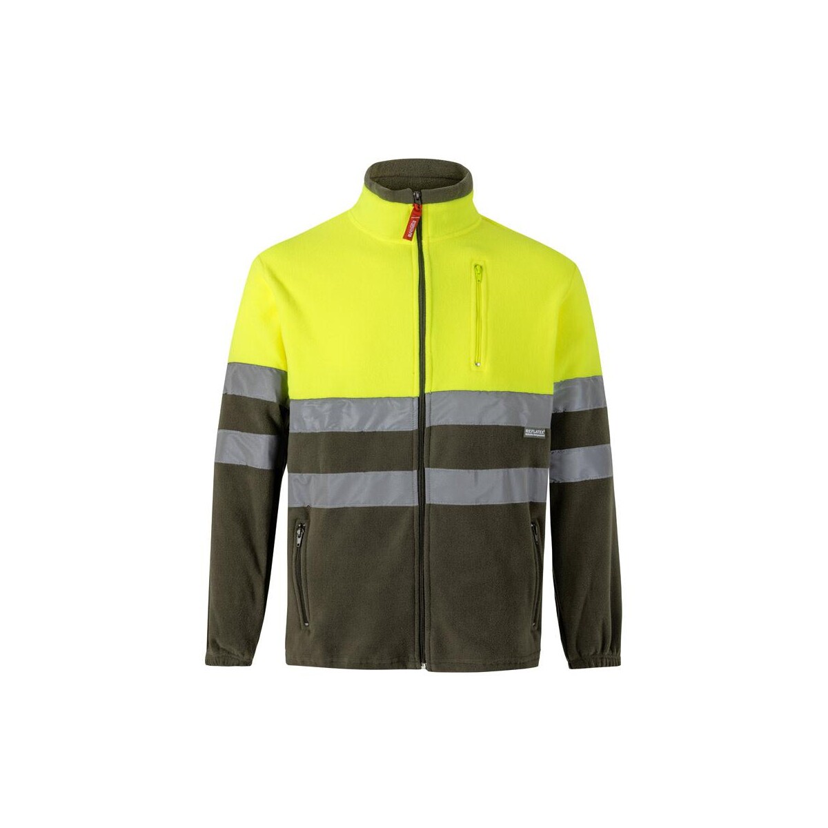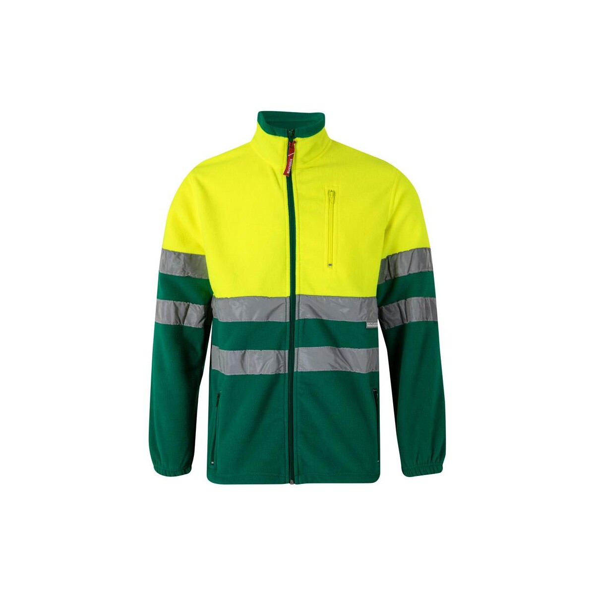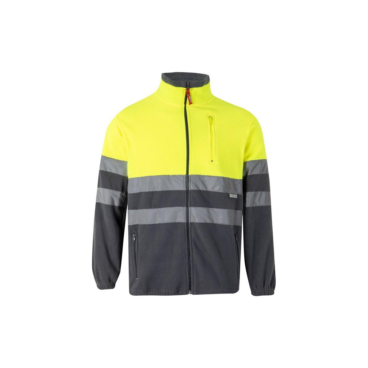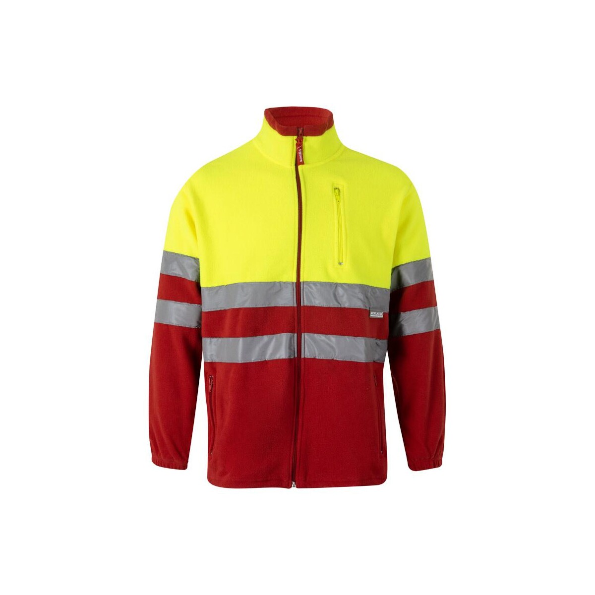 VL EROS. Dwukolorowa kurtka polarowa (280 g/m²), poliester (100%) to znakomite rozwiązanie dla marek, które chcą połączyć bezpieczeństwo pracowników z efektowną ekspozycją logo. Wykonana w 100 % z poliestru o gramaturze 280 g/m² kurtka zapewnia przyjemne ciepło, a jednocześnie nie obciąża – jej waga to zaledwie 630 g. Odblaskowe paski na tułowiu i rękawach sprawiają, że użytkownik pozostaje widoczny nawet przy słabym oświetleniu, co potwierdza certyfikat EN20471 klasa 1. Dostępność aż siedmiu rozmiarów od XS do 3XL pozwala precyzyjnie dopasować model do każdej sylwetki.