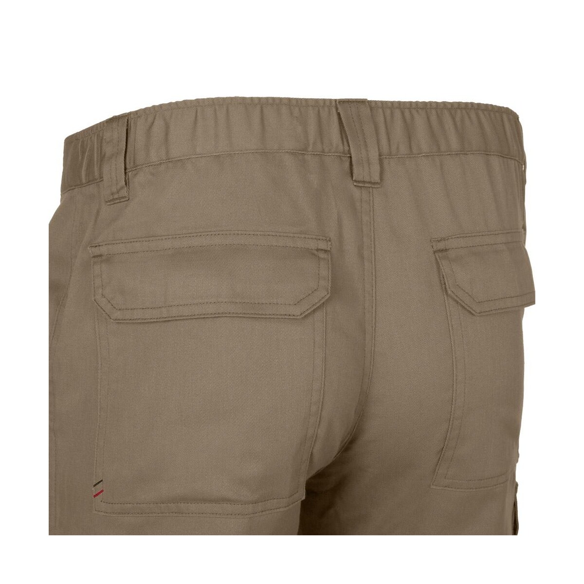 Sekret wygody kryje się w mieszance bawełna 35% i poliester 65% o gramaturze 190 g/m². Tkanina oddycha, a jednocześnie jest odporna na przetarcia, co docenią ekipy budowlane, serwisowe i magazynowe. Elastyczny pas zapewnia swobodę ruchów, a aż sześć kieszeni (2 francuskie, 2 boczne, 2 tylne z fałdami) pozwala mieć przy sobie narzędzia, telefon czy notatnik. Całość waży jedynie 406 g, więc nie obciąża podczas długiego dnia pracy.