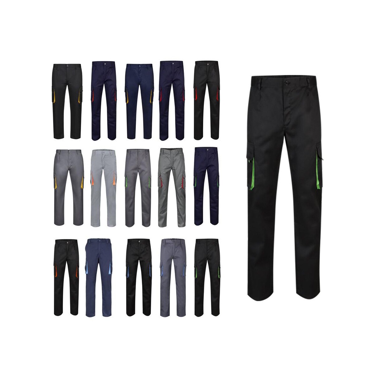 VL HYPNOS. Spodnie diagonalne z wieloma kieszeniami (200 g/m²), z bawełny (35%) i poliestru (65%) to wyśmienity wybór, gdy potrzebujesz trwałej odzieży roboczej, która znakomicie prezentuje logo Twojej marki. Dwukolorowy design ze wstawkami kontrastowymi przy klinach, ściągaczach i szwach od razu przyciąga wzrok, a aż sześć funkcjonalnych kieszeni (dwie francuskie, dwie boczne i dwie tylne) gwarantuje, że najpotrzebniejsze drobiazgi zawsze są pod ręką. Materiał o splocie diagonalnym 200 g/m² łączy oddychającą bawełnę z wytrzymałym poliestrem, co sprawia, że spodnie są odporne na przetarcia, łatwe w praniu i zachowują intensywność kolorów nawet po wielu cyklach.