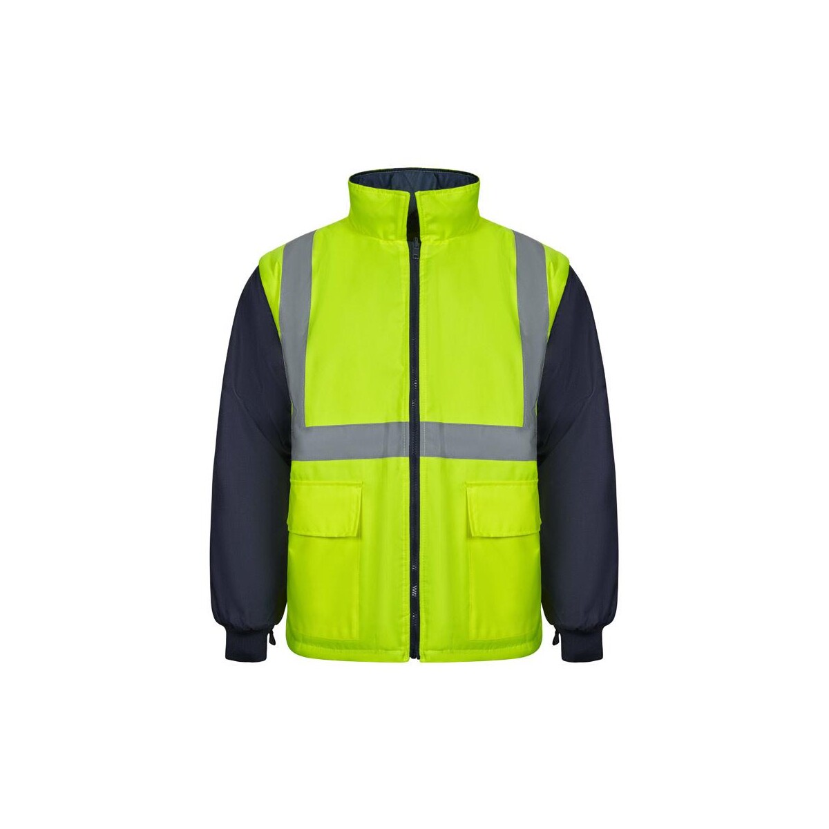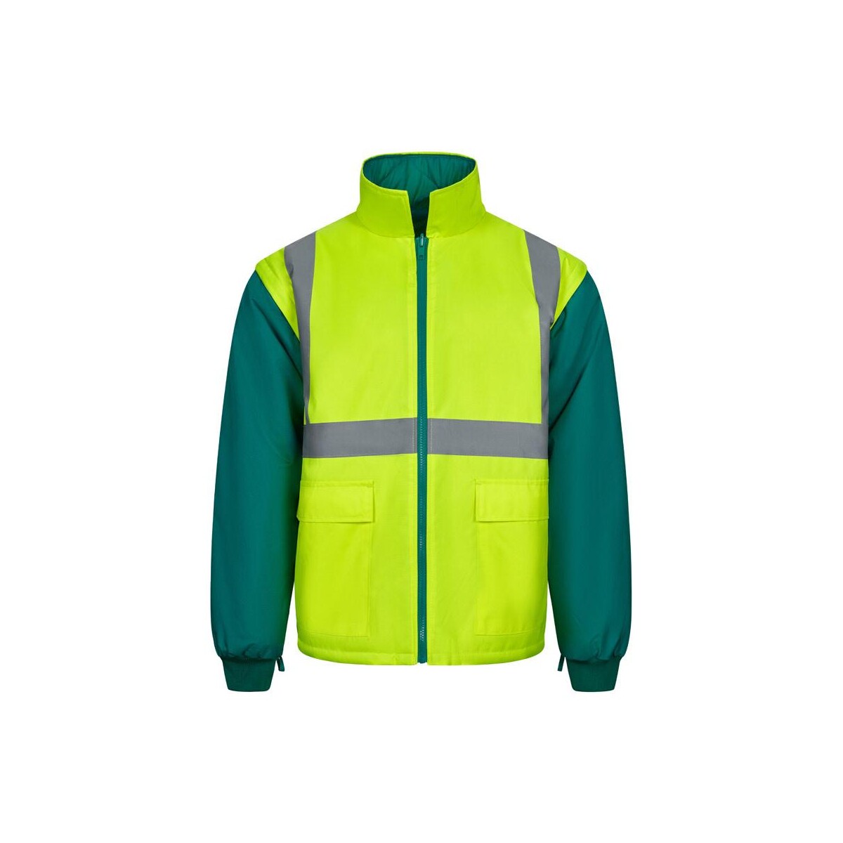VL JUNO LARGE to prawdziwy kameleon w świecie odzieży ochronnej – dwukolorowa kurtka 4 w 1, która w zależności od potrzeb zamienia się w parkę, płaszcz przeciwdeszczowy, klasyczną kurtkę lub lekką kamizelkę. Dzięki temu pracownicy nie muszą wozić ze sobą kilku części garderoby, a Ty zyskujesz oszczędność miejsca i budżetu. Gruby poliester 180 g/m² z trwałą powłoką PU gwarantuje wodoszczelność, a odblaskowe paski poprawiają widoczność w każdą pogodę. Rozmiary 4XL i 5XL, waga 1464 g i szeroka paleta kolorów (m.in. granatowo-żółty, pomarańczowy, szaro-żółty, zielono-żółty) pozwalają dopasować model do wymagań różnych załóg 😊.