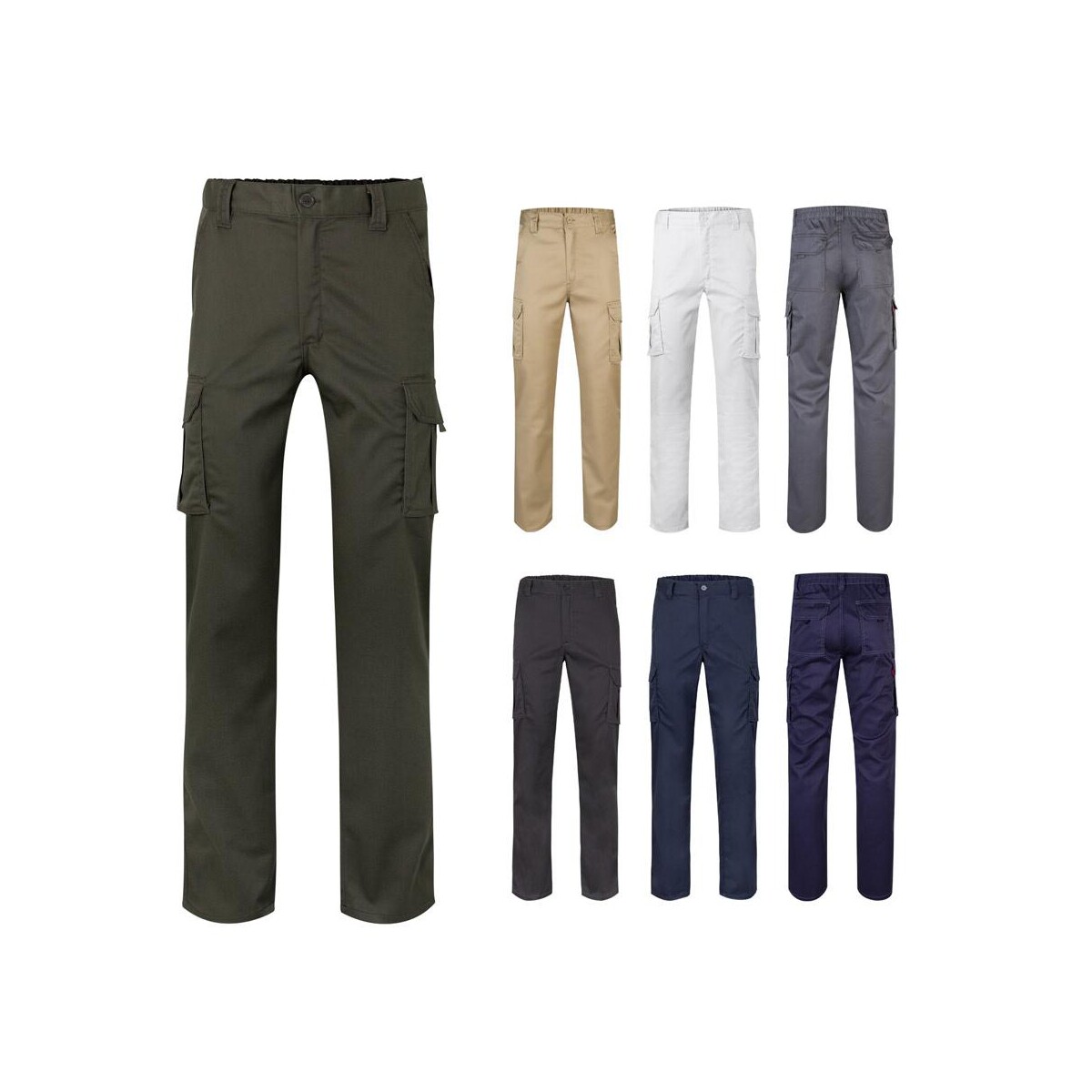 VL PAN. Dwukolorowe, elastyczne spodnie z wieloma kieszeniami (240 g/m²), z bawełny (46%), EME (38%) i poliestru (16%)