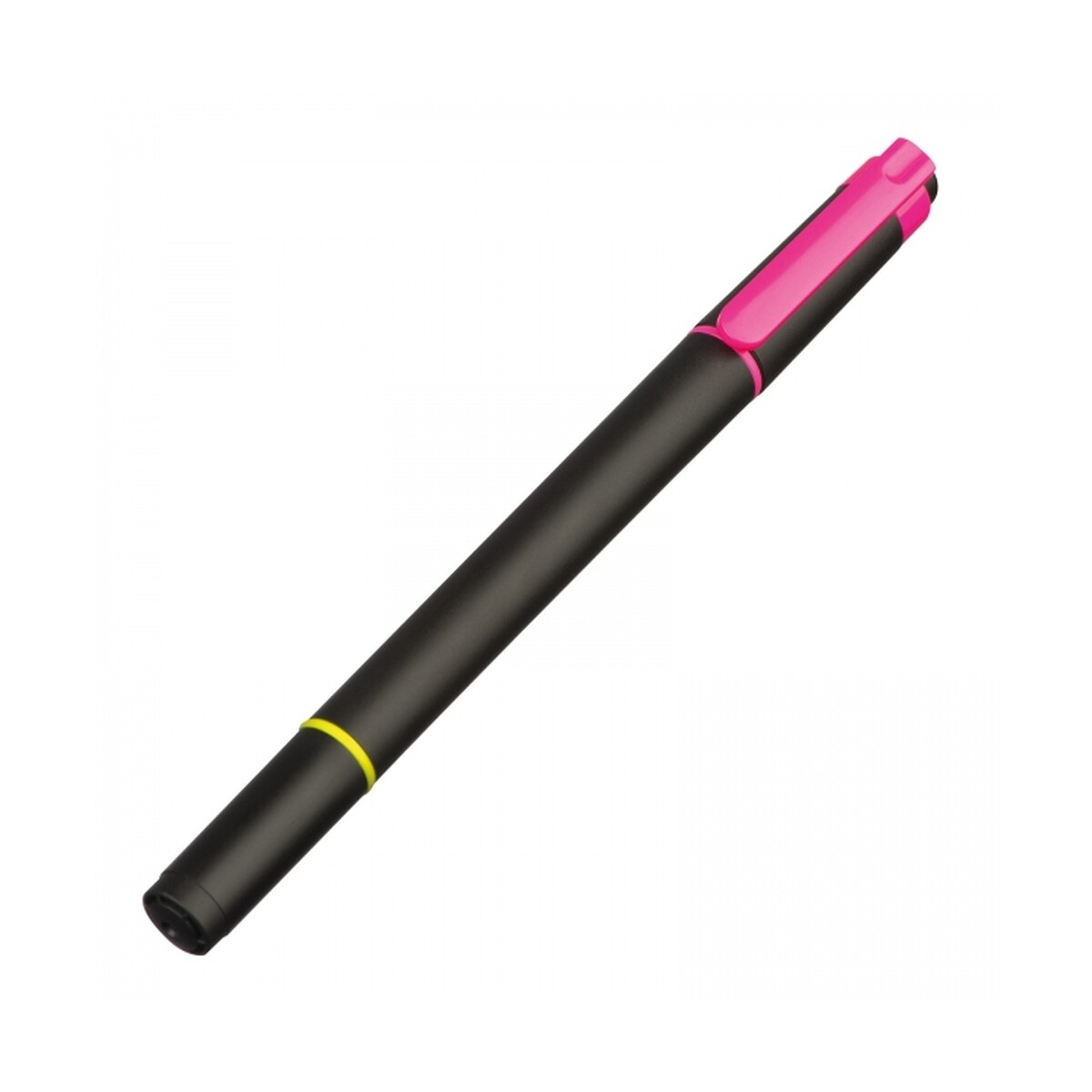 Zakreślacz dwustronny 2 kolory FIORENZA to kompaktowy, a zarazem niezwykle funkcjonalny gadżet, który wniesie świeżą energię do każdego biurka. Dzięki połączeniu neonowego różu i żółci w jednej, ergonomicznej obudowie z plastiku, błyskawicznie wyróżnisz najważniejsze fragmenty tekstu, prezentacji czy notatek. Korpus w eleganckim, głębokim czarnym kolorze został zaprojektowany tak, aby wyeksponować Twoje logo – wystarczy subtelny nadruk, a zakreślacz natychmiast zamieni się w praktyczny upominek reklamowy 😊.