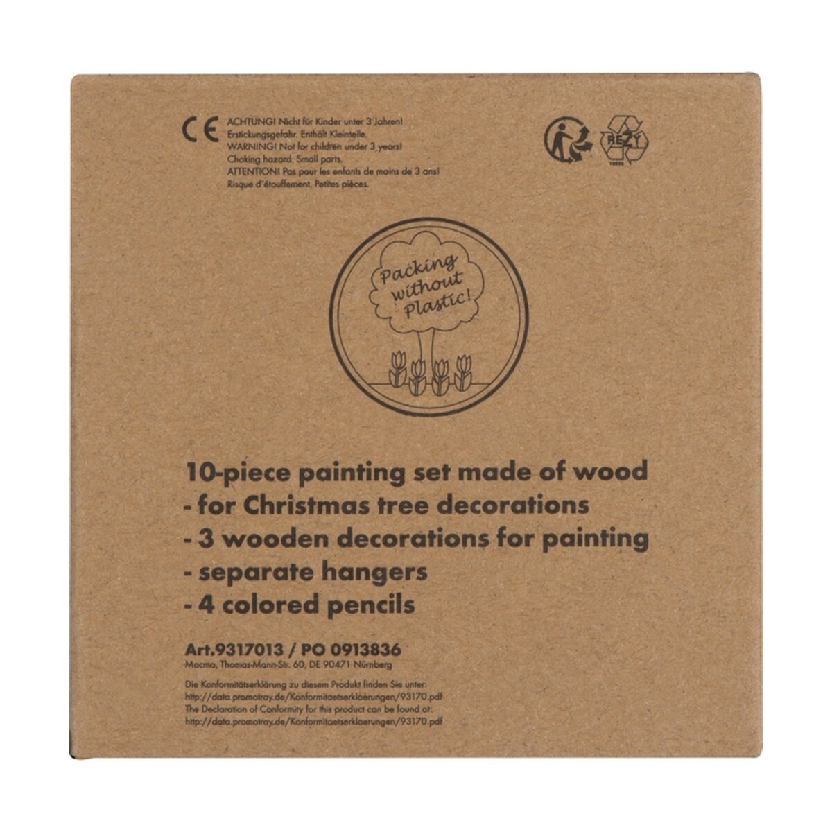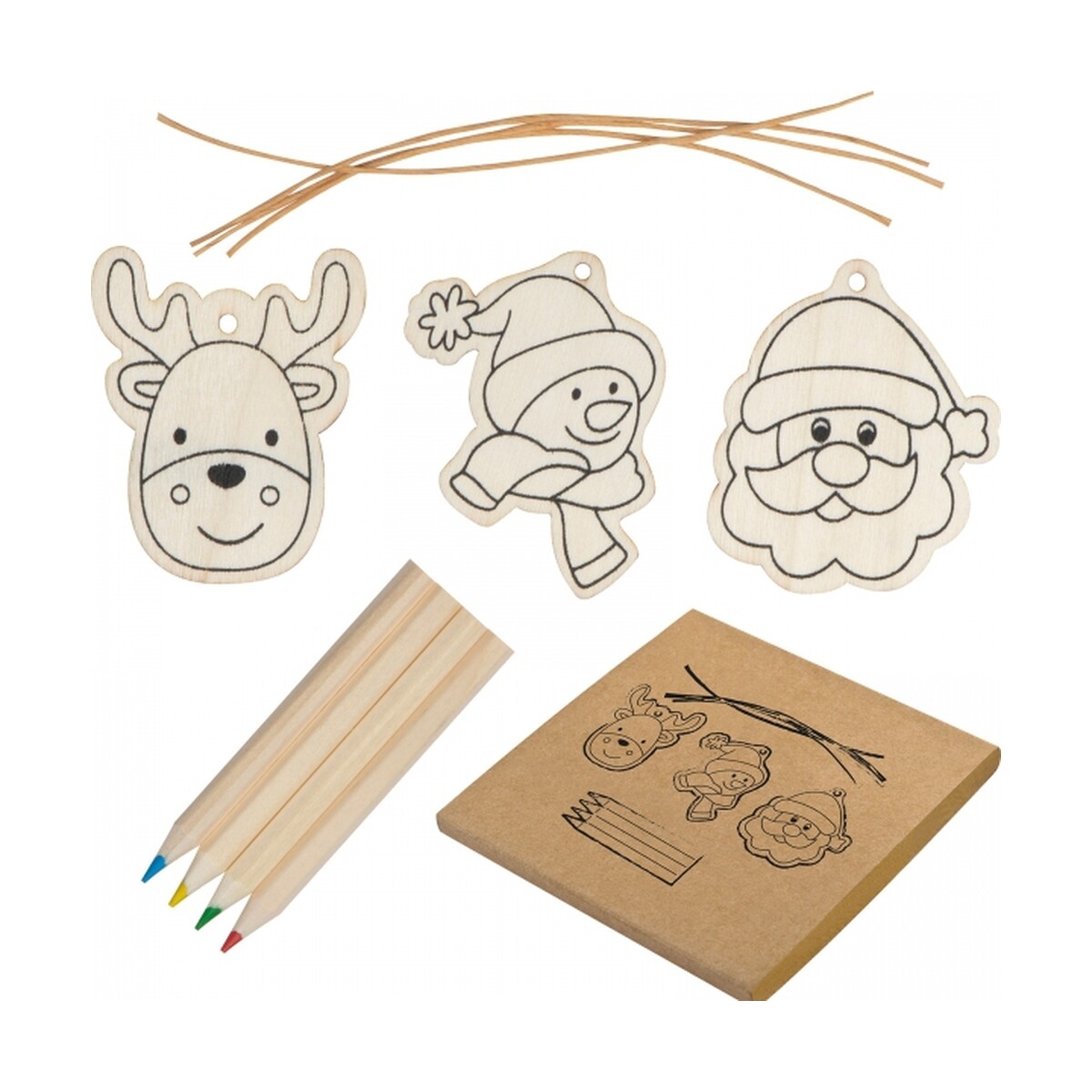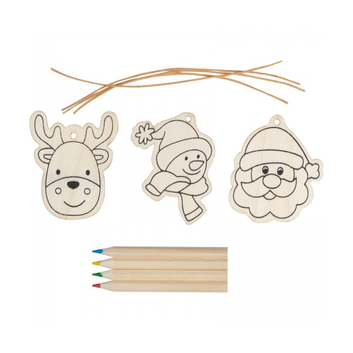 Zawieszki na choinkę do kolorowania z kredkami PABLO to niezwykle kreatywny gadżet, który wprowadzi świąteczną atmosferę do każdego domu czy biura 😊. Trzy urocze, drewniane wzory – mikołaj, bałwanek i renifer – czekają, aby nadać im barw dzięki dołączonym kredkom. To produkt, który łatwo spersonalizujesz poprzez nadruk lub logo, czyniąc go atrakcyjnym upominkiem reklamowym dla Twojej firmy.