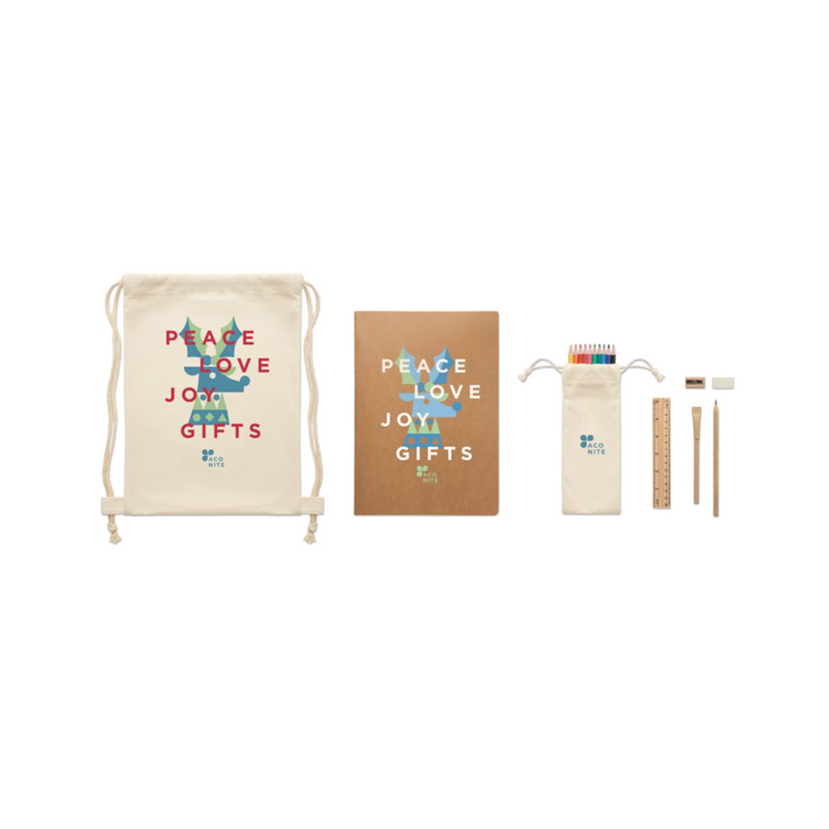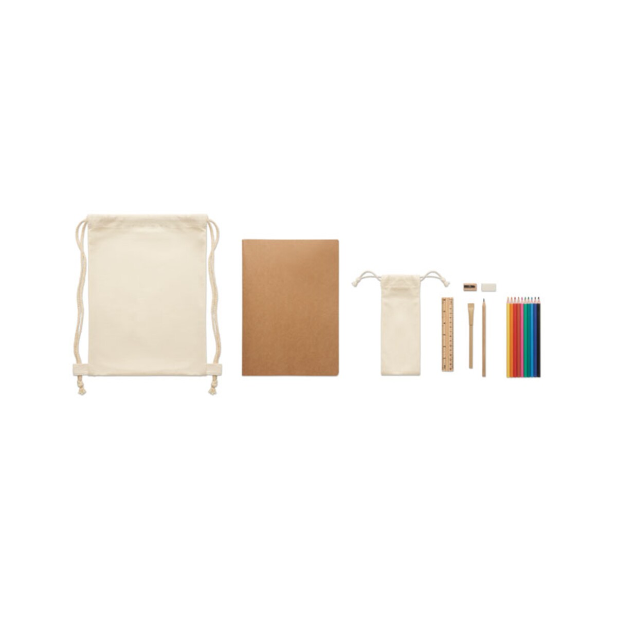 Zestaw do rysowania dla dzieci FUNDRAW to prawdziwie kreatywny gadżet, który wprowadzi najmłodszych w świat barw i kształtów, a jednocześnie pozwoli Twojej marce zabłysnąć dzięki możliwości umieszczenia wyraźnego logo lub spersonalizowanego nadruk. W skład kompletu wchodzi aż 5 solidnych przyborów – drewniana linijka, temperówka, gumka, drewniany ołówek i długopis – a ponadto 10 intensywnych kredek, blok z papieru A4 z recyklingu (50 gładkich kartek, czyli 100 stron) oraz praktyczna bawełniana torba ze sznurkiem. Całość waży zaledwie 0,460 kg i mierzy kompaktowe 35 × 26 cm, co czyni zestaw łatwym do przechowywania i transportu – także w szkolnym plecaku 😊.