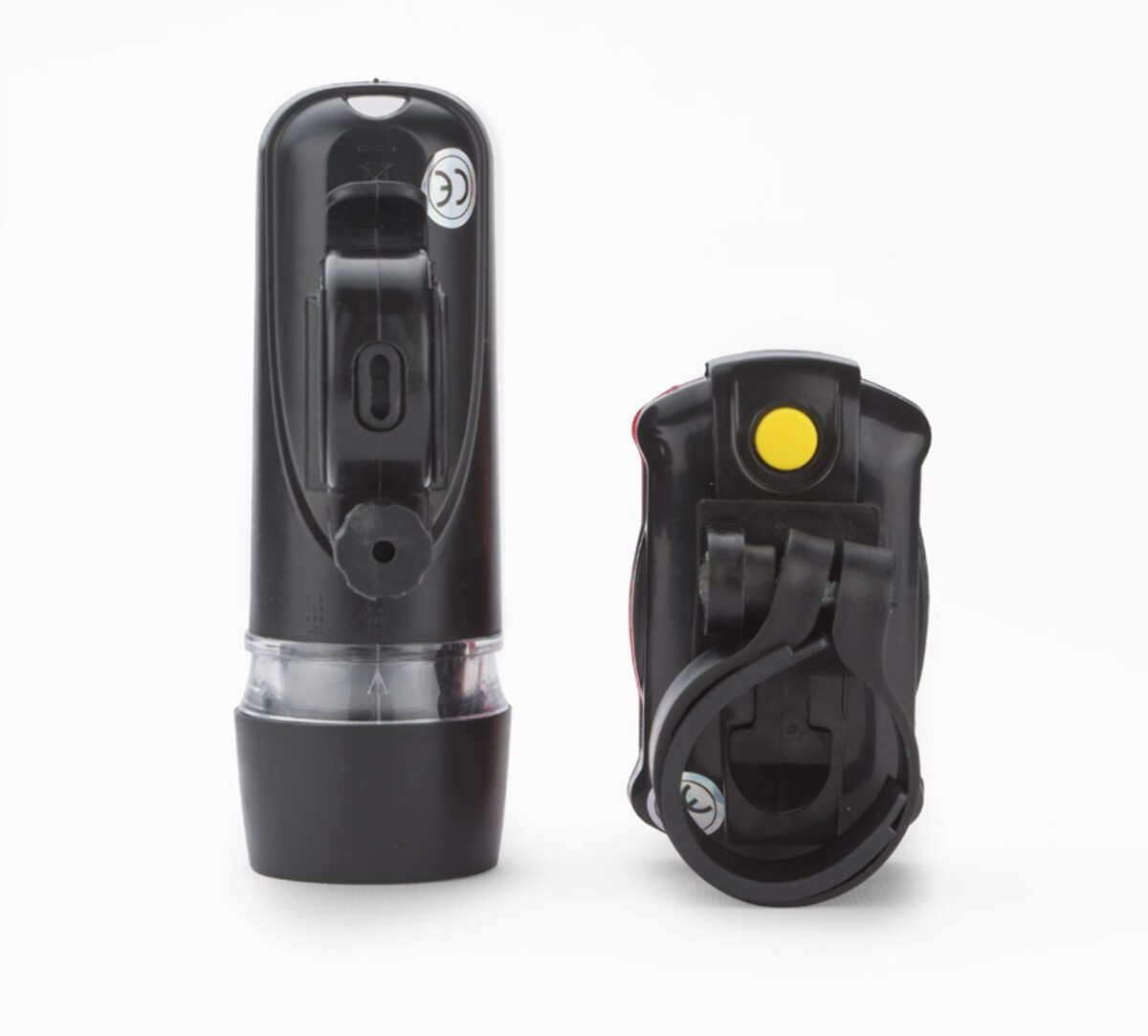 Zestaw lampek rowerowych AZER to znakomity, wielofunkcyjny gadżet, który błyskawicznie podniesie bezpieczeństwo oraz prestiż każdej kampanii promocyjnej. W jego skład wchodzą dwie lekkie, lecz wytrzymałe lampki: przednia o średnicy ⌀ 36 × 102 mm z 5 białymi diodami LED i trzema trybami świecenia, oraz tylna 68 × 39 × 30 mm wyposażona w 5 czerwonych diod LED i aż siedem trybów pracy. Całość waży zaledwie 126 g, wykonana jest z solidnego tworzywa w eleganckiej, uniwersalnej czerni. Dzięki temu to propozycja trwała, a zarazem lekka – można ją zapiąć jedną ręką nawet w zimowych rękawicach 🙂.