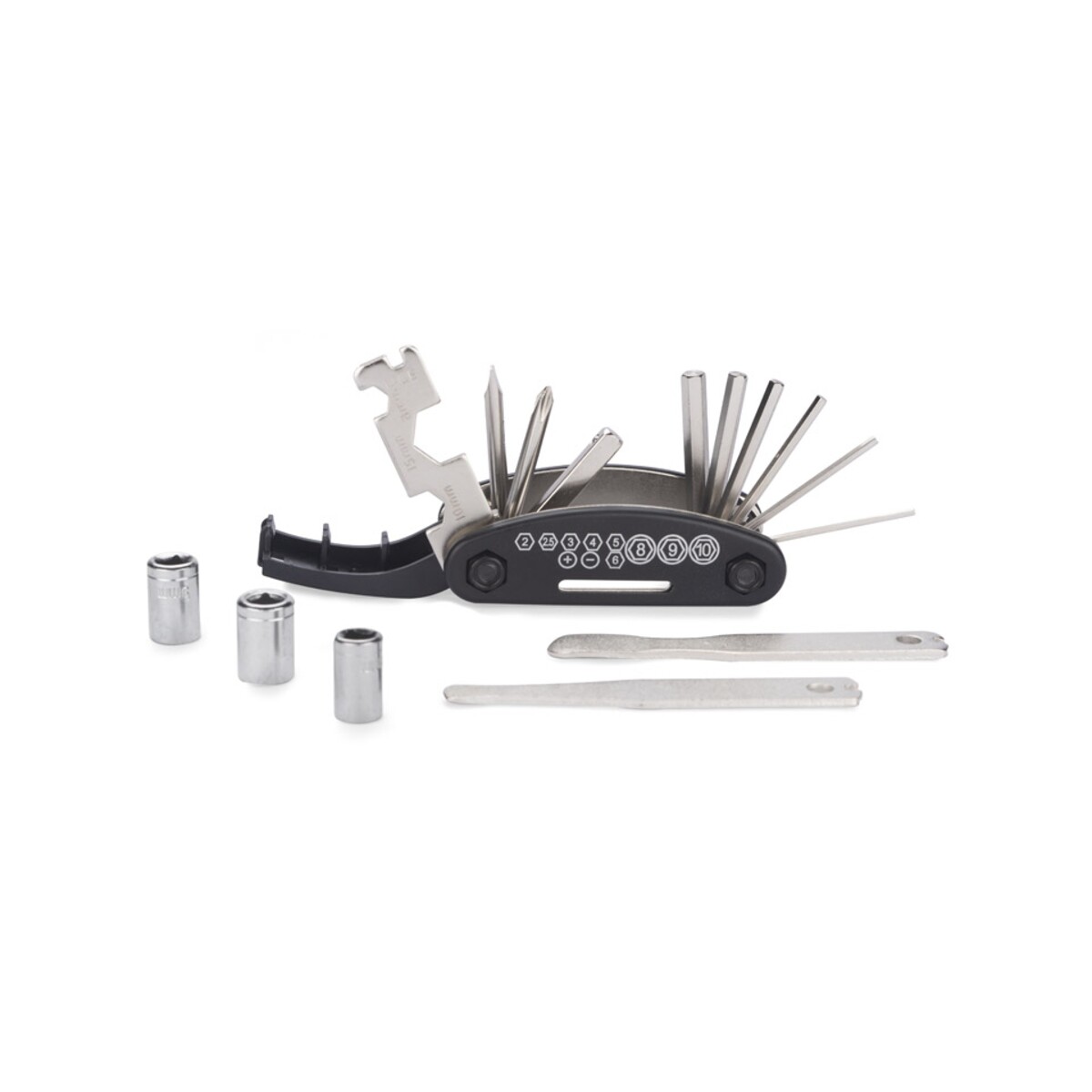 Zestaw narzędzi rowerowych LEROY to prawdziwie doskonały kompan każdej wyprawy rowerowej – niewielkie etui o wymiarach 85 × 115 × 40 mm i masie zaledwie 314 g skrywa komplet kluczy imbusowych, nasadki, śrubokręty, klucz uniwersalny, łyżki do opon oraz łatki do dętek. Dzięki takiej różnorodności narzędzi naprawisz pękniętą dętkę, wyregulujesz hamulce czy dokręcisz śrubę w przerzutce, nie przerywając przygody na szlaku 🚴♂️.