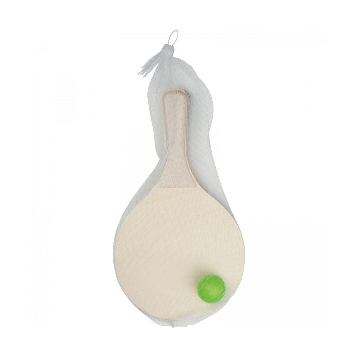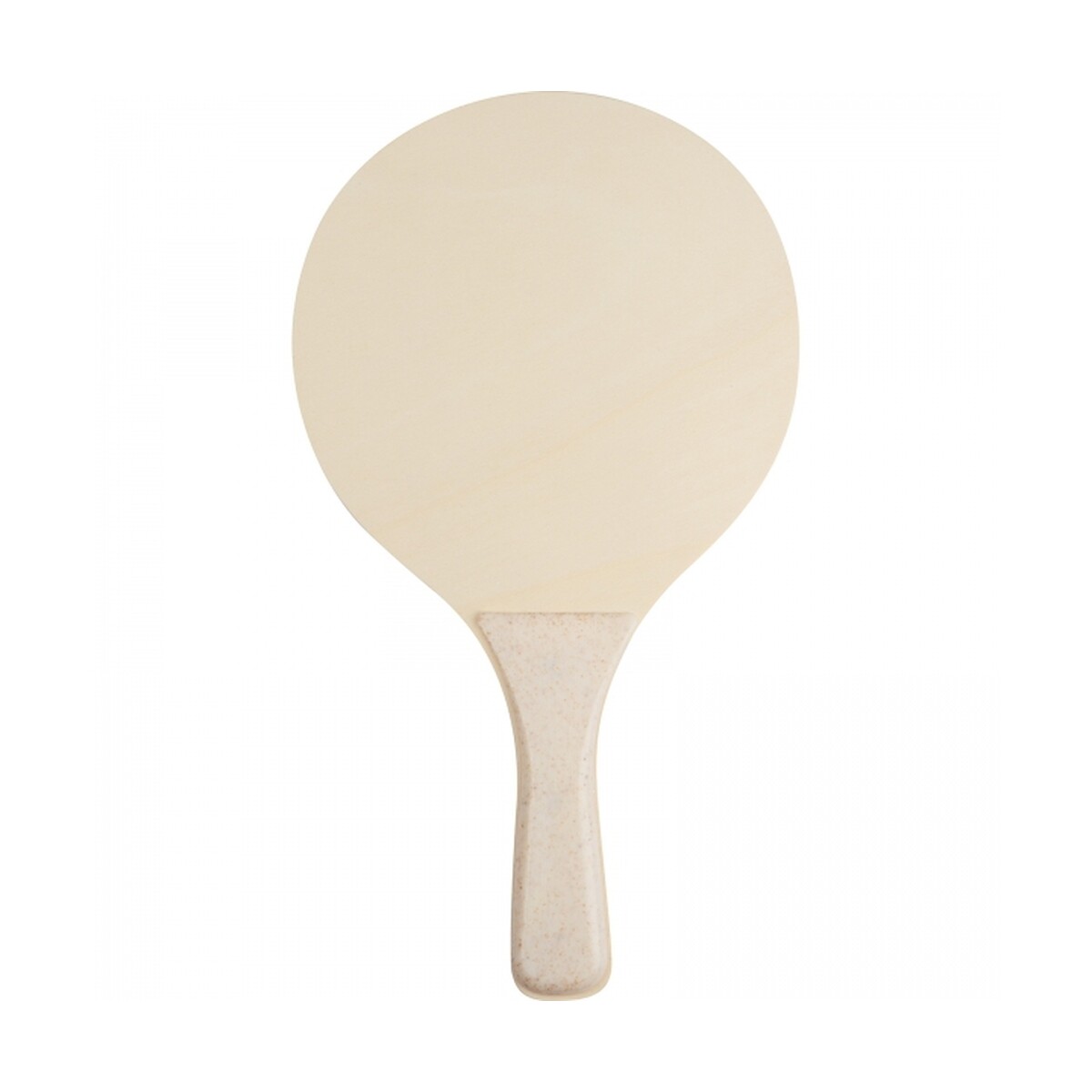 Zestaw paletek plażowych TIZIANA to niezastąpiony towarzysz słonecznych dni nad morzem, jeziorem czy na firmowym pikniku 🏖️. Dwie solidne paletki z naturalnego drewna z wyprofilowanym plastikowym uchwytem oraz lekka piłeczka tworzą komplet, który zapewni aktywną rozrywkę i stanie się efektownym gadżet promującym Twój biznes. Duża, gładka powierzchnia każdej paletki aż zachęca do wyeksponowania firmowego logo lub kreatywnego nadruku – dzięki temu gra w plażowego ping-ponga zamieni się w mobilny nośnik reklamy, widoczny z daleka.