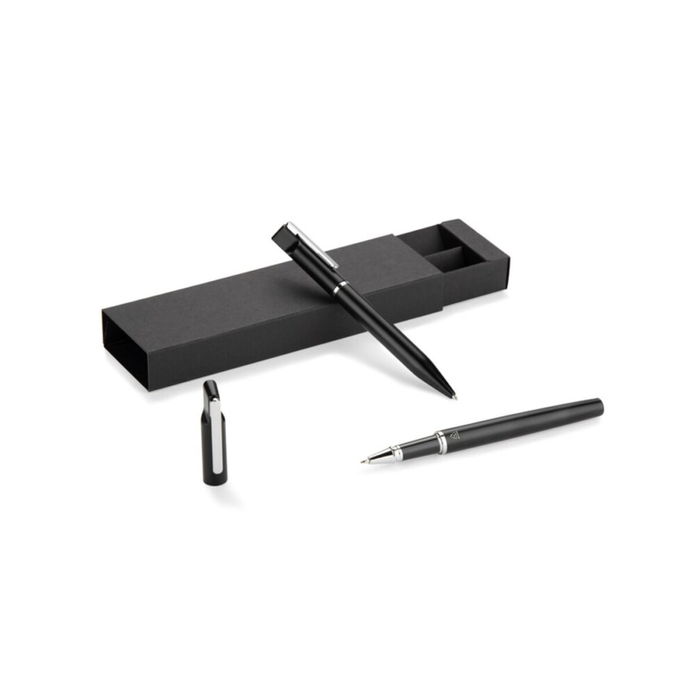Zestaw piśmienniczy EFAN to esencja elegancji i świadomego wyboru. Ten starannie skomponowany komplet, obejmujący długopis oraz pióro kulkowe z recyklingowanego aluminium, zachwyca smukłą sylwetką w głębokiej czerni i subtelnymi, srebrnymi akcentami. Matowe wykończenie nie tylko wygląda luksusowo, lecz także zapewnia pewny chwyt 🤩. Dzięki minimalistycznemu designowi Zestaw piśmienniczy EFAN przyciągnie uwagę w każdym biurze i podczas każdej konferencji, stając się wyjątkowym nośnikiem logo oraz precyzyjnego nadruku.