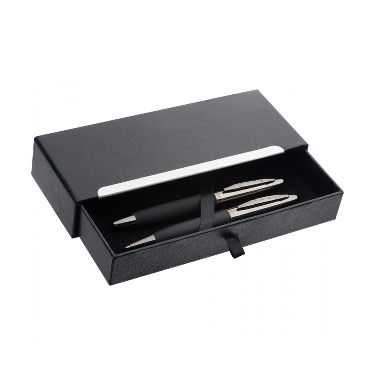 Wytrzymałość stalowych elementów, niezawodna stalówka i klasyczna czerń czynią ten zestaw doskonałym towarzyszem codziennych obowiązków i wyjątkowych okazji. Jeśli poszukujesz upominku, który będzie jednocześnie praktyczny, elegancki i trwały, ten reklamowy zestaw spełni wszystkie oczekiwania – to naprawdę znakomity wybór!